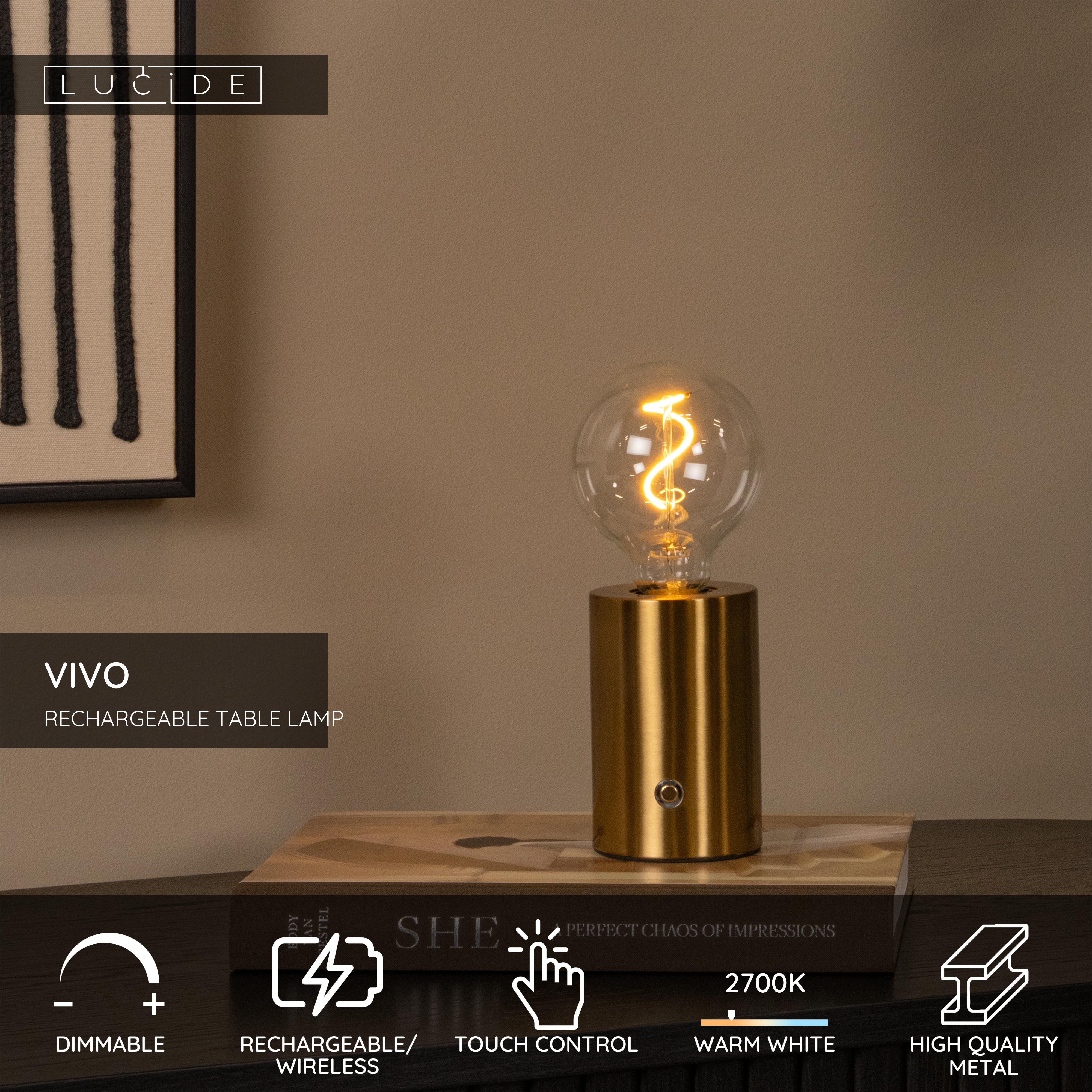 Lucide VIVO - Rechargeable Table lamp - Battery pack - Ø 8 cm - LED Dim. - E27 - 1x1W 2700K - Matt Gold / Brass