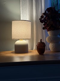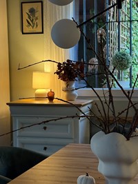 Warm up next to your table lamp with Woolly. This quirky table lamp has a 16 x 16 x 15.5 cm lampshade made of high-quality cotton. The woolly design is very pleasing to the eye. The stately base is also 12 centimetres in diameter, giving a balanced overall height of 28 centimetres. The on/off switch on the cord makes it easy to operate. Connect Woolly to an external dimmer, so you can always choose the right amount of light. Next to the bed, in the study, on the dresser… Let your imagination run wild with this unique lamp.