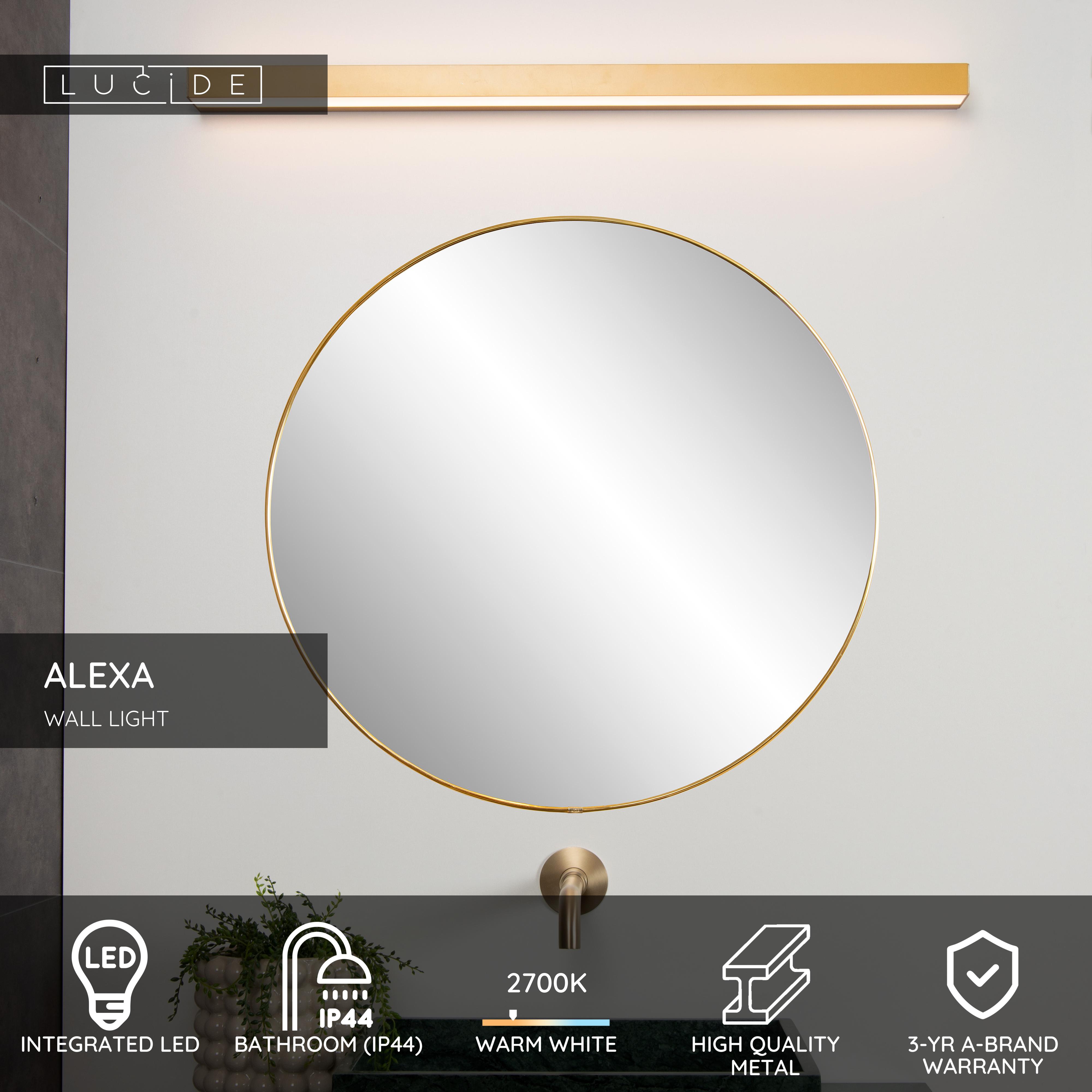 Minimalistic lighting that is still magnificent? Alexa combines sublime simplicity with timeless elegance. This rectangular wall lamp with integrated LED fits perfectly in your bathroom or above the sink in the guest WC. Constructed in high-quality metal and with an opal shade over the light source, Alexa casts a warm glow into the room. The ideal companion for a good start to your day or to end the evening in serenity. The wall lamp is 90 centimetres long, 8 centimetres wide and nearly 4 centimetres tall.
