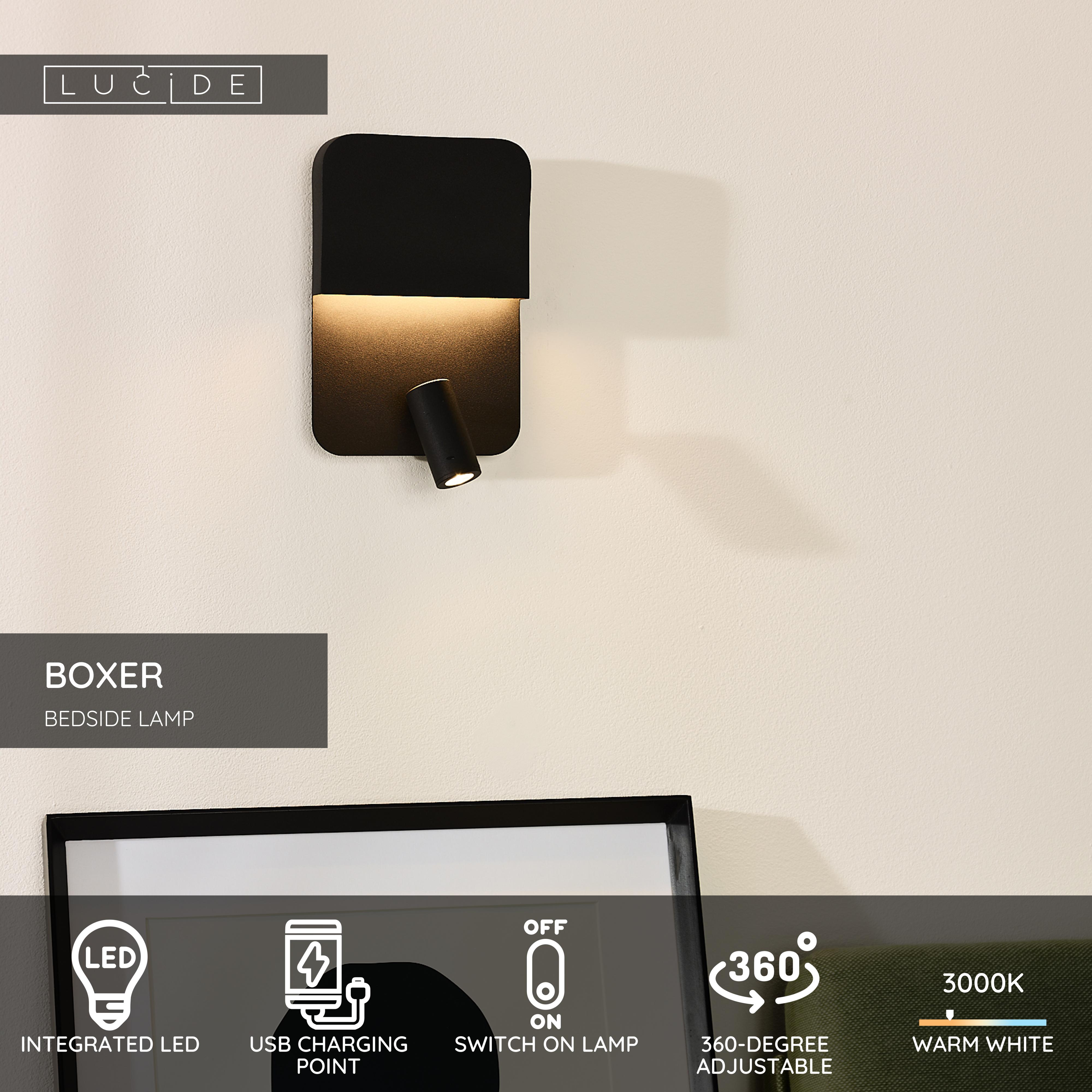 Lucide BOXER - Bedside lamp / Wall light - LED - 3000K - With USB charging point - Black
