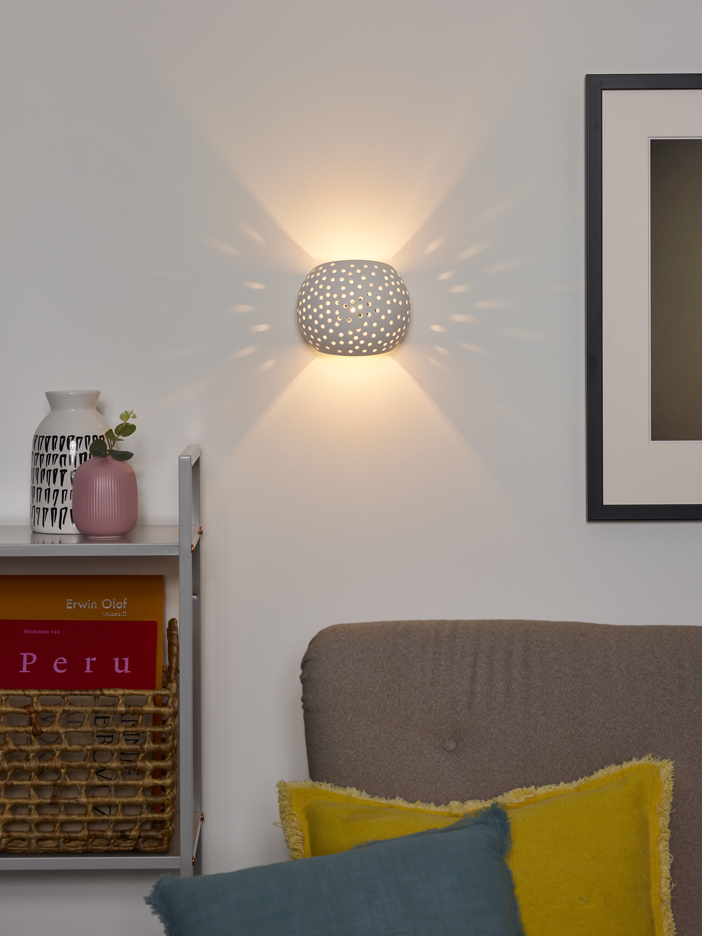 Modern design trends combine with natural influences and organic shapes. That brings you to Gipsy. This playful wall light is new in the Lucide line and combines fun lighting with a playful design. The armature in white looks like a boulder on the wall, but the seemingly random openings create a cool lighting effect, on the wall and in the immediate environment. This wall light for modern interiors - entryway, bedroom or living room - is simple to connect to a dimmer.