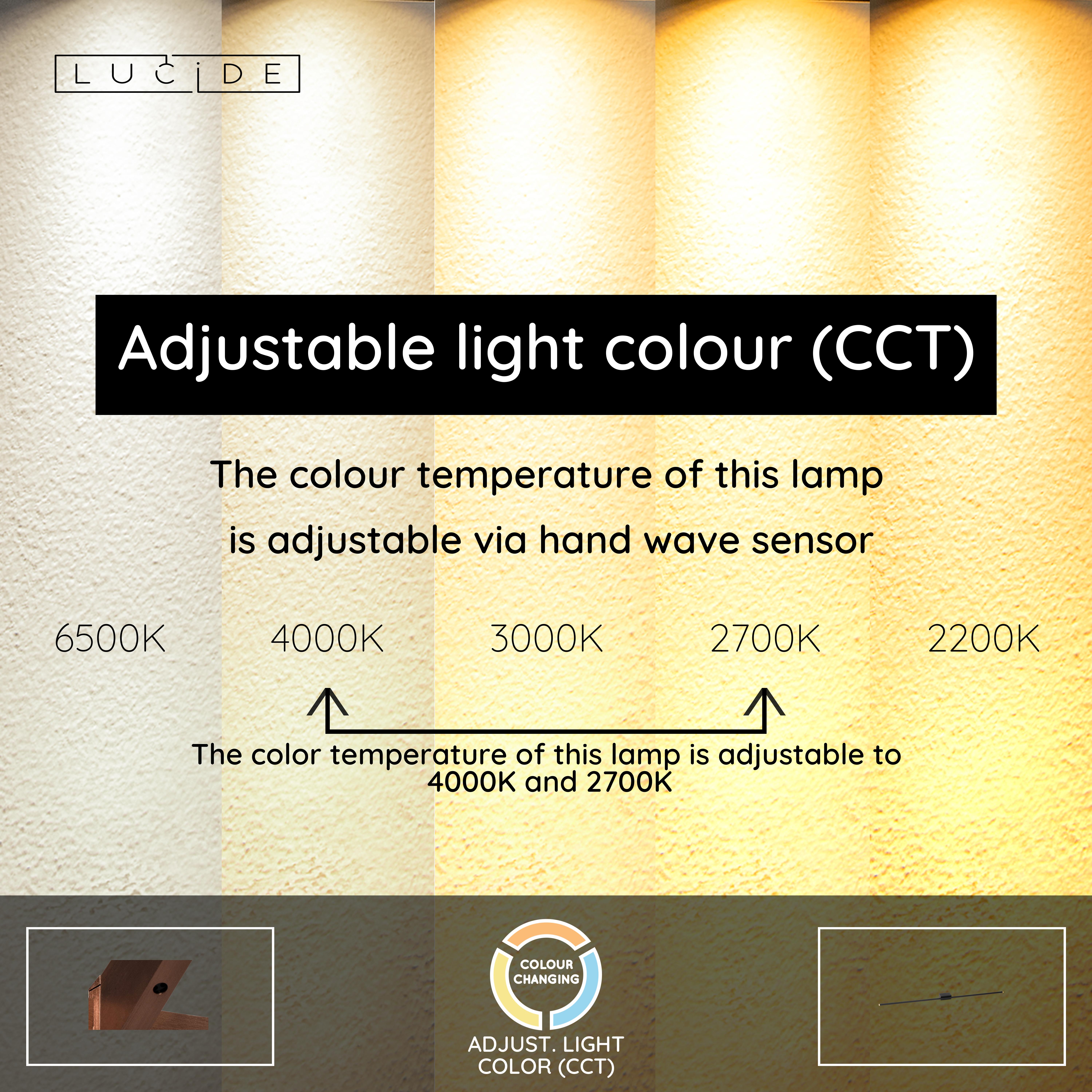 - Colour temperature adjustable via Hand wave sensor (2700K-4000K)