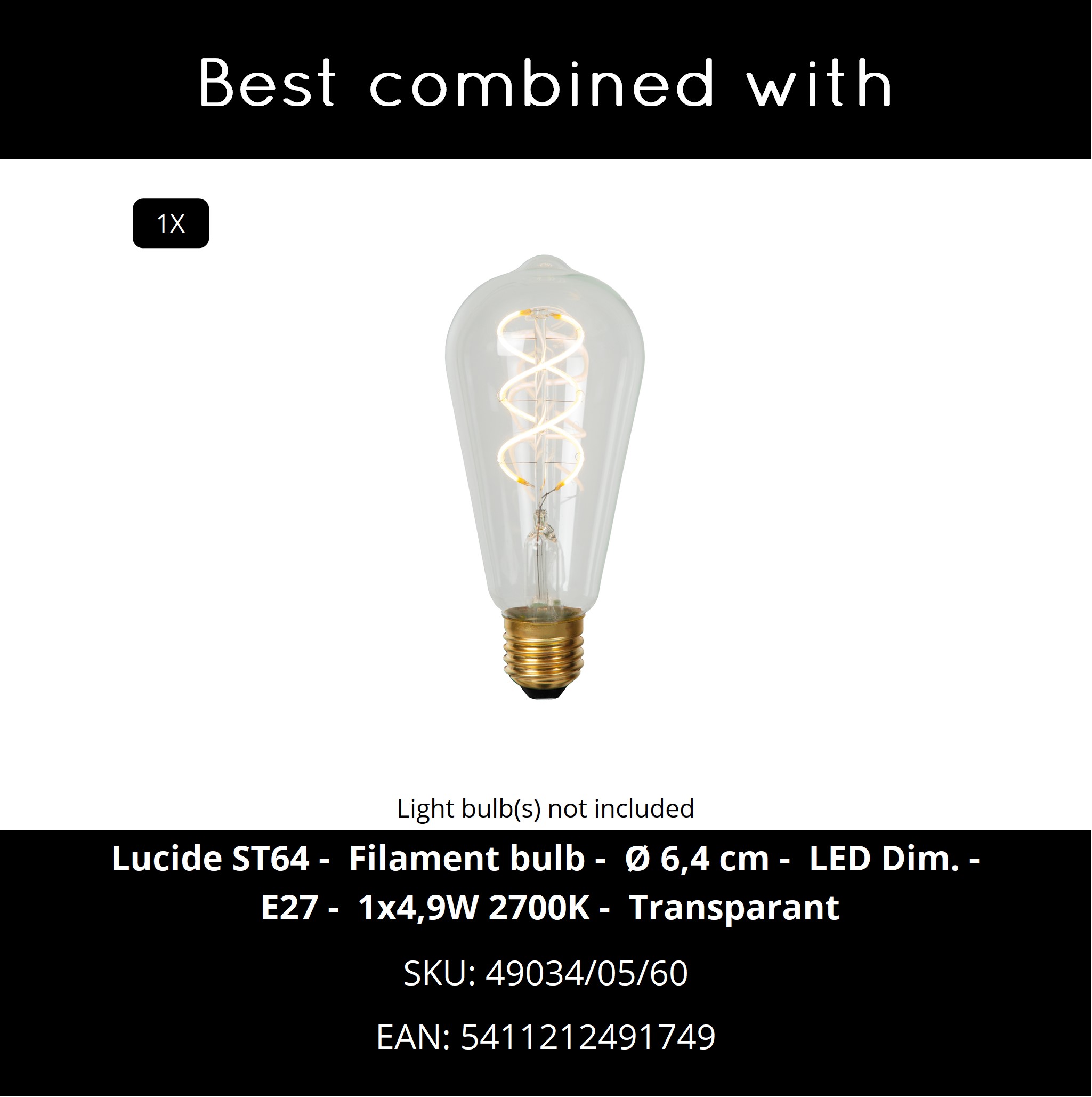 - 2 Years warranty on the fixture / Appropriate light source is EAN: 5411212491749