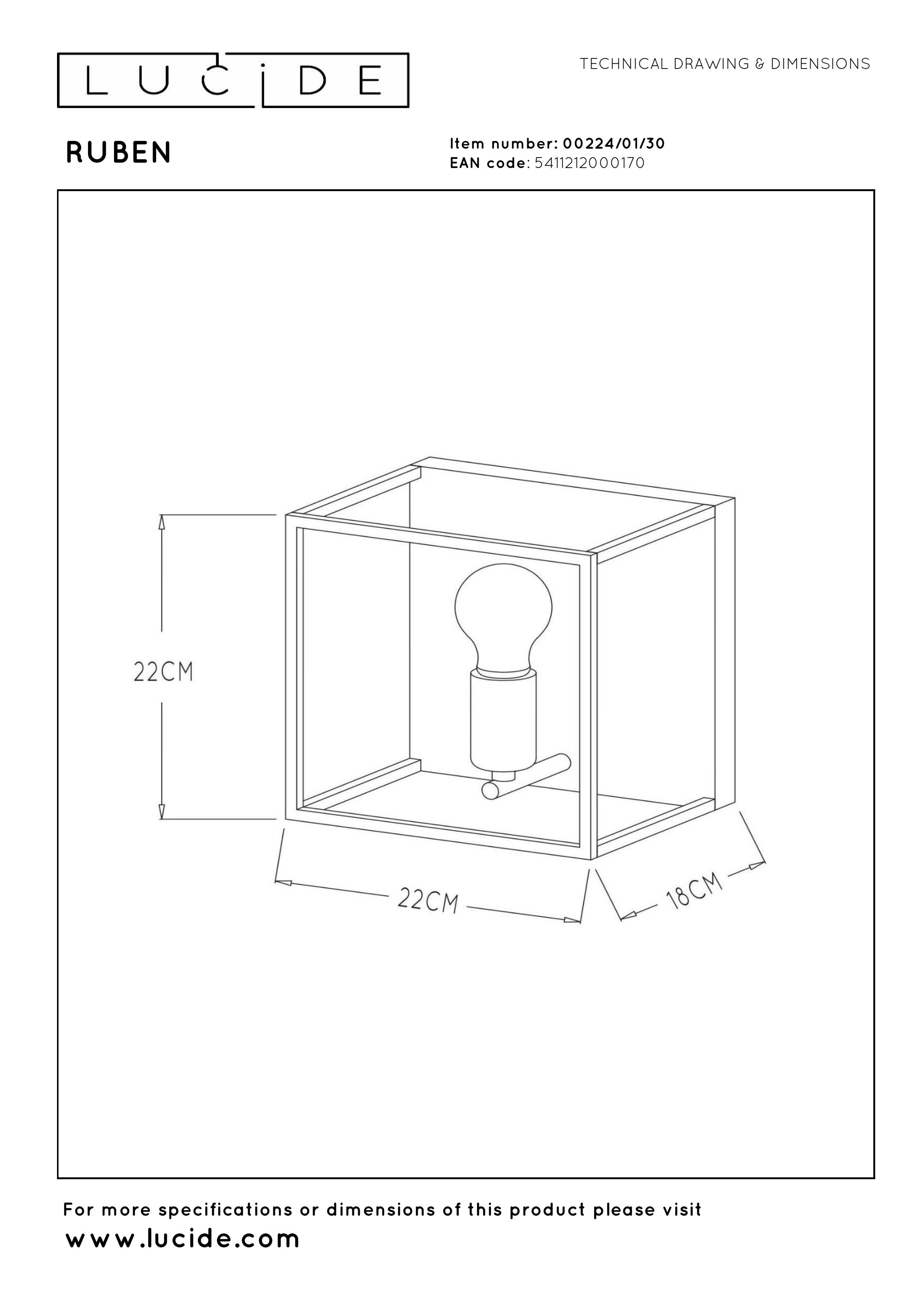 Lucide RUBEN - Wall light - 1xE27 - Black
