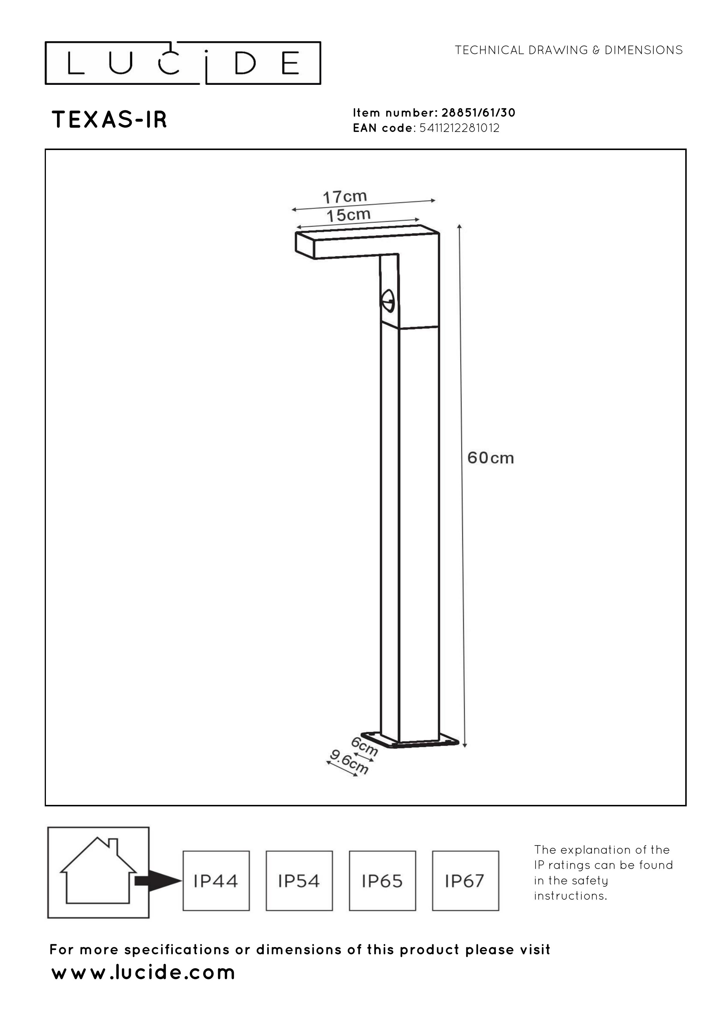 Forget switches. With this Texas IR, you always have outdoor lighting when it is needed. The barely visible, integrated motion sensor guides you on your way to the pool house or garden shed. When placed around the terrace, this outdoor lighting also creates a pleasant and functional setting. The integrated LED lighting uses just 6 watt. You are immediately saved from high energy bills. The sleek plinth in anthracite is 60 centimetres tall.