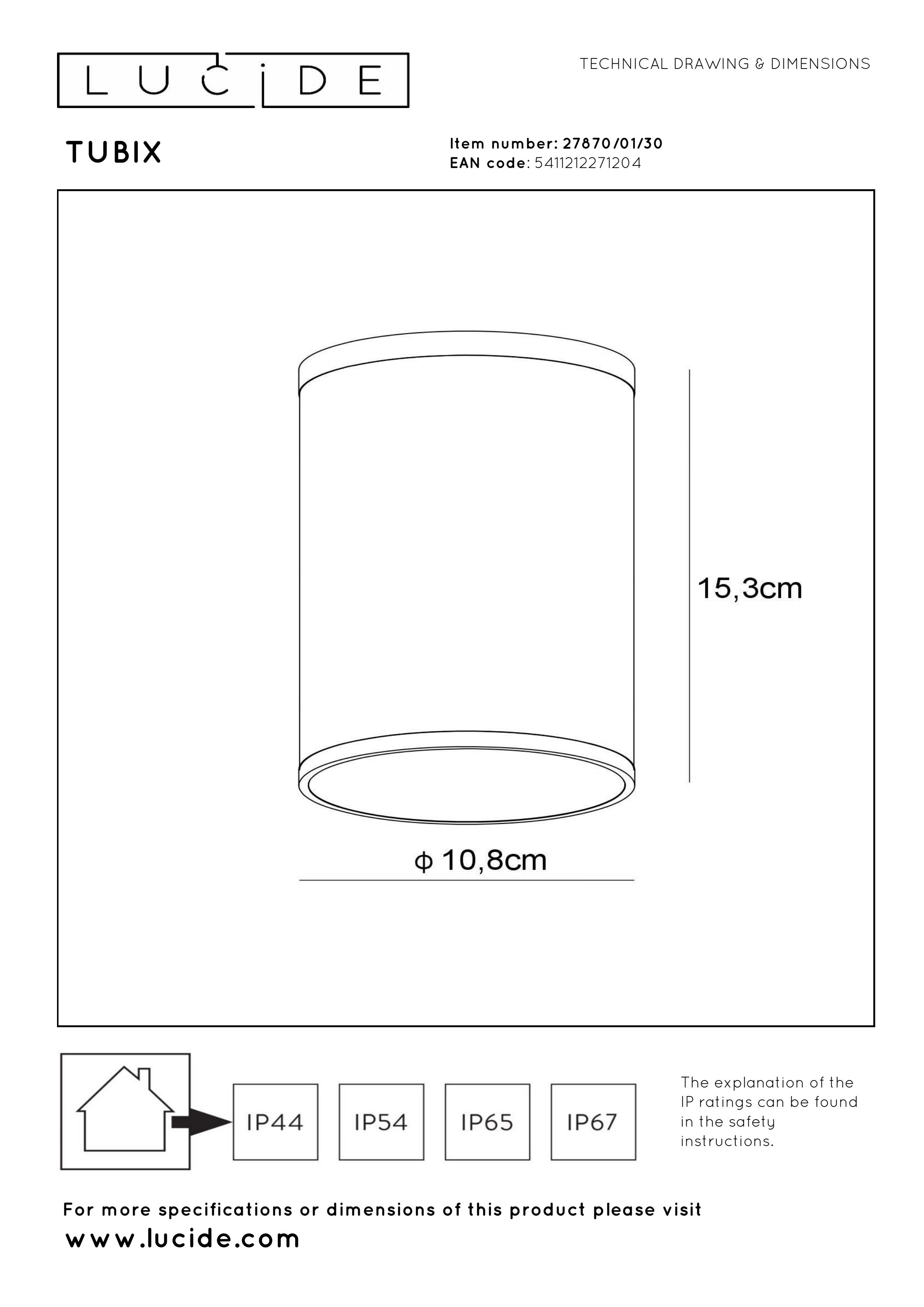 Full enjoyment of your covered terrace. With Tubix, you create the ideal atmosphere for long, beautiful summer evenings. Tubix is a ceiling light made for outdoor use. Wind and weather do not bother it. It is the ideal model for placing in a covered terrace or pool house. The beautiful tube shape is very stylish and yet modern. With a height of just 15.3 centimetres, it takes up little space. Tubix is equipped with an E27 fitting.
