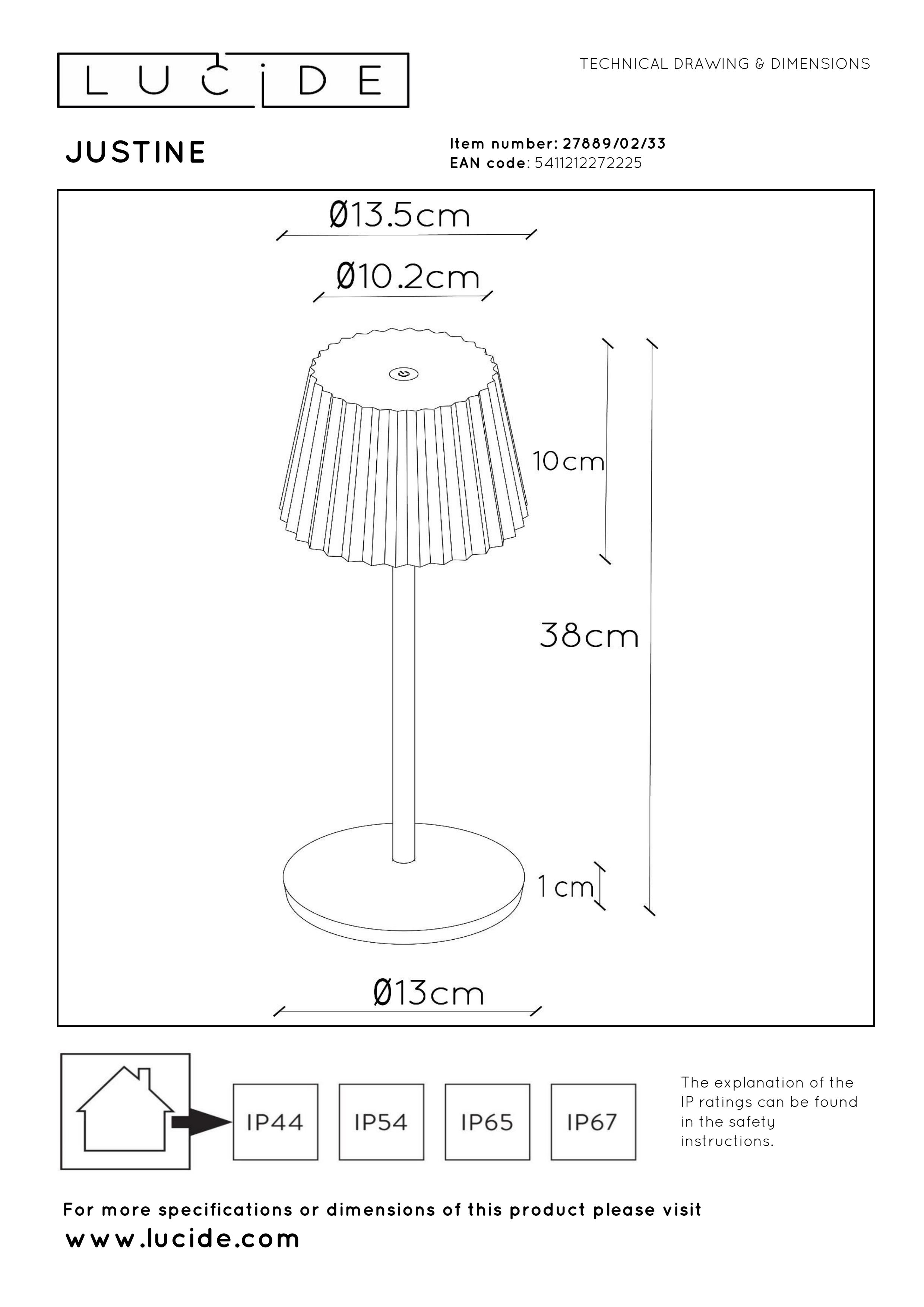 Will this be your new favourite outdoor twilight lamp? With its long slim base and playful lamp shade in A-line, Justine brings a touch of nostalgia to your terrace, outdoor seating area or poolside. This light fixture made of PVC is perfect for long-term outdoor use. With Justine, you always have the right atmosphere wherever and whenever you want. The integrated LED bulb is dimmable, and the contact charging platform allows you to take this table lighting with you. Justine is 38 centimetres tall and almost 14 centimetres around.