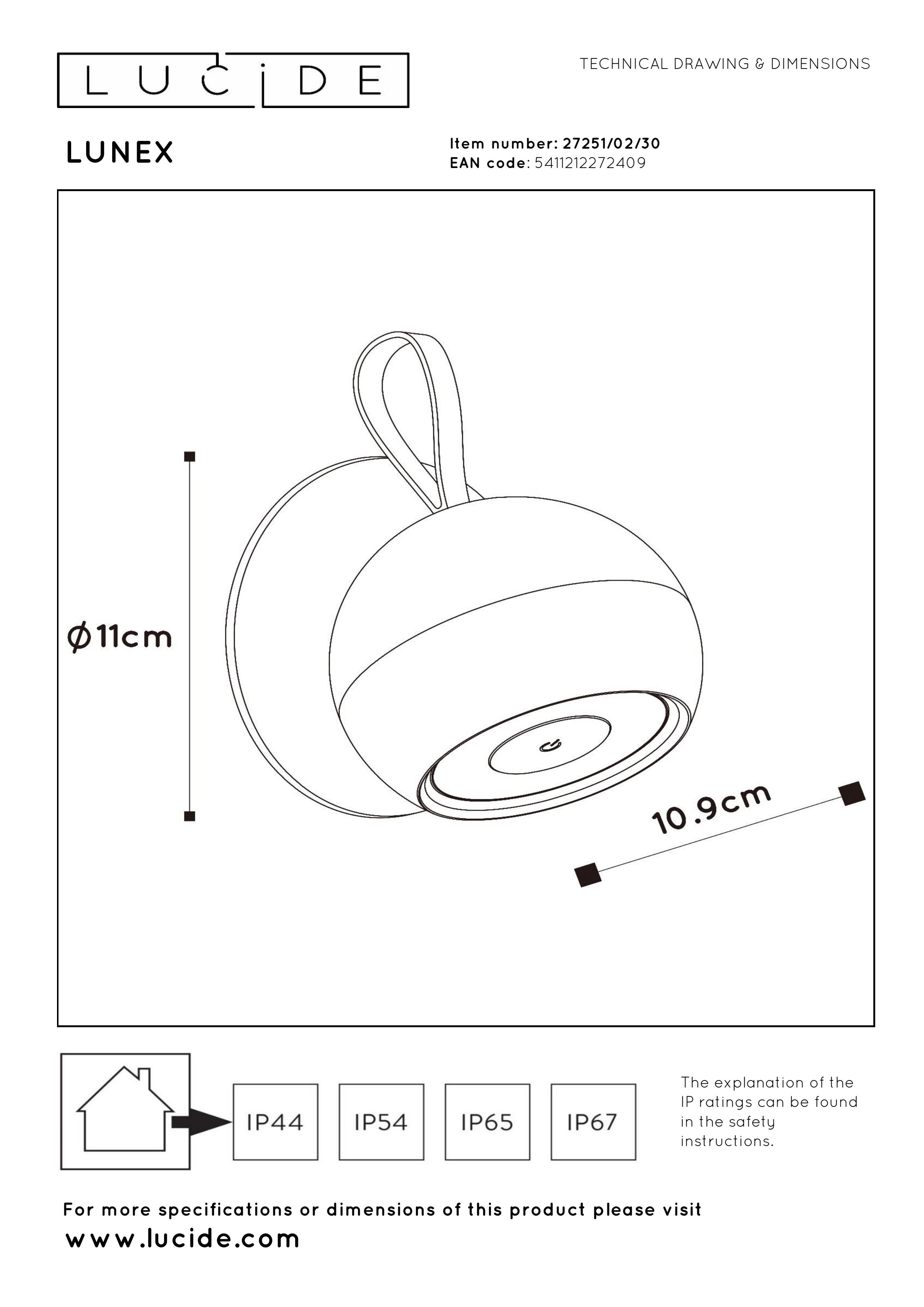 - Energy consumption: 1x2W / 5V / Dimmable (Light bulb included)