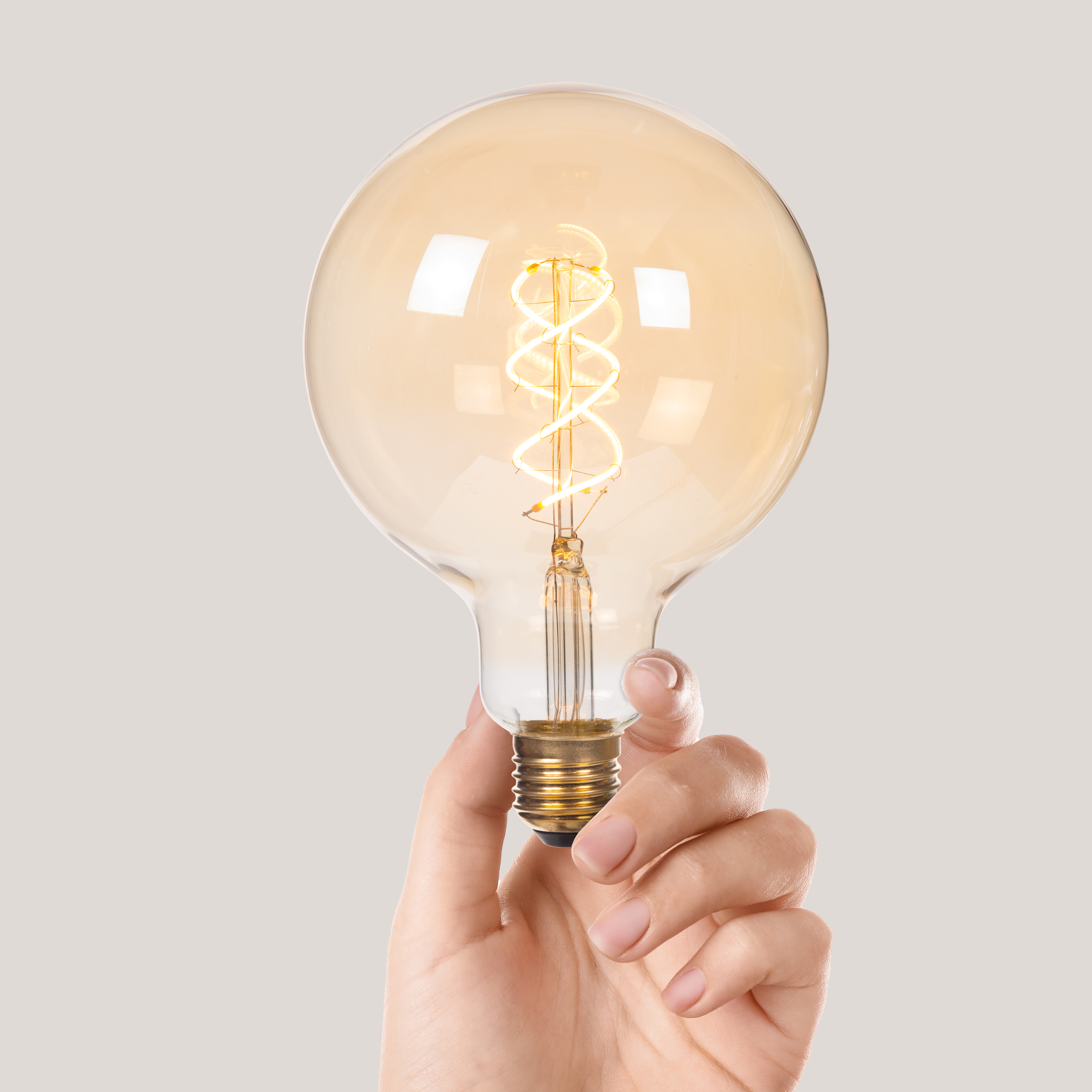 Las bombillas de filamento de carbono de Lucide se presentan en varias opciones de color. Por supuesto, tienes las típicas bombillas de color ámbar. Su filamento amarillo le da a estos modelos un aspecto retro y produce una luz muy hermosa. Pero Lucide no solo tiene en su catálogo bombillas de filamento de carbono de color ámbar. También las hay transparentes, así como de color mate e, incluso, con un acabado en color cromo. En nuestro sitio web encontrarás exactamente el tipo de bombilla de filamento de carbono que estás buscando.