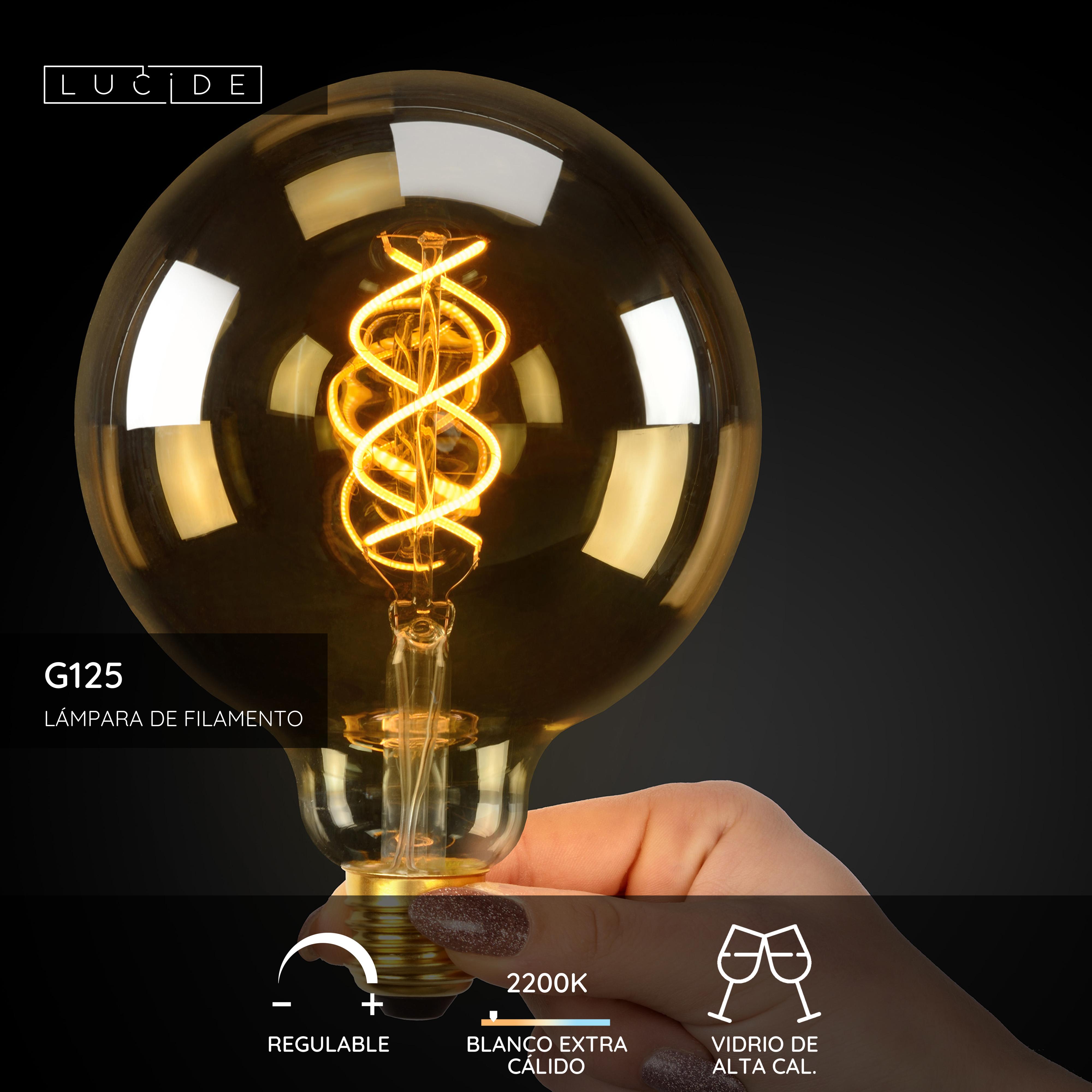 Lucide G125 - Lámpara de filamento - Ø 12,5 cm - LED Regul. - E27 - 1x4,9W 2200K - Ámbar