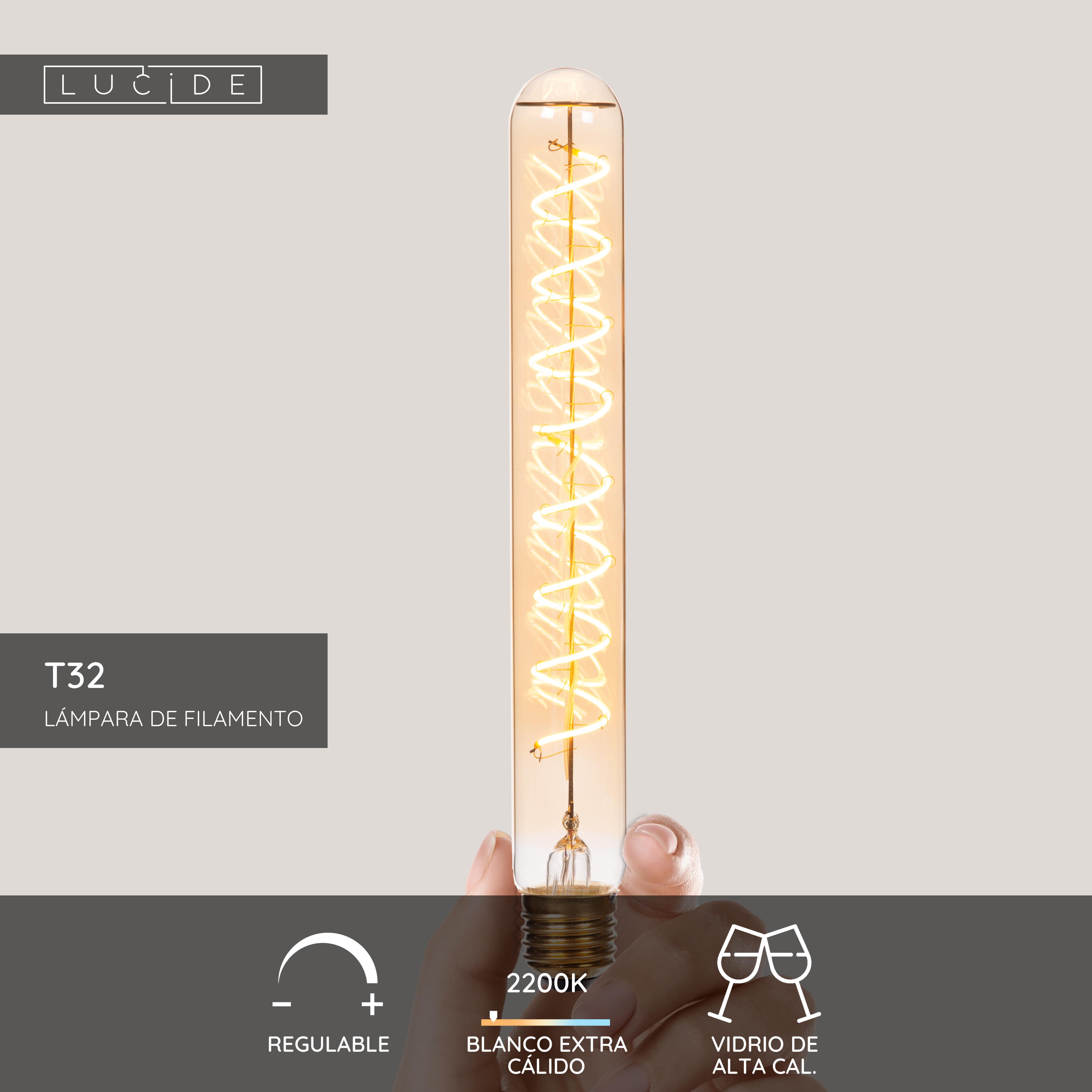 Lucide T32 - Lámpara de filamento - Ø 3,2 cm - LED 3 StepDim (Memoria) - E27 - 1x4,9W 2200K - Ámbar