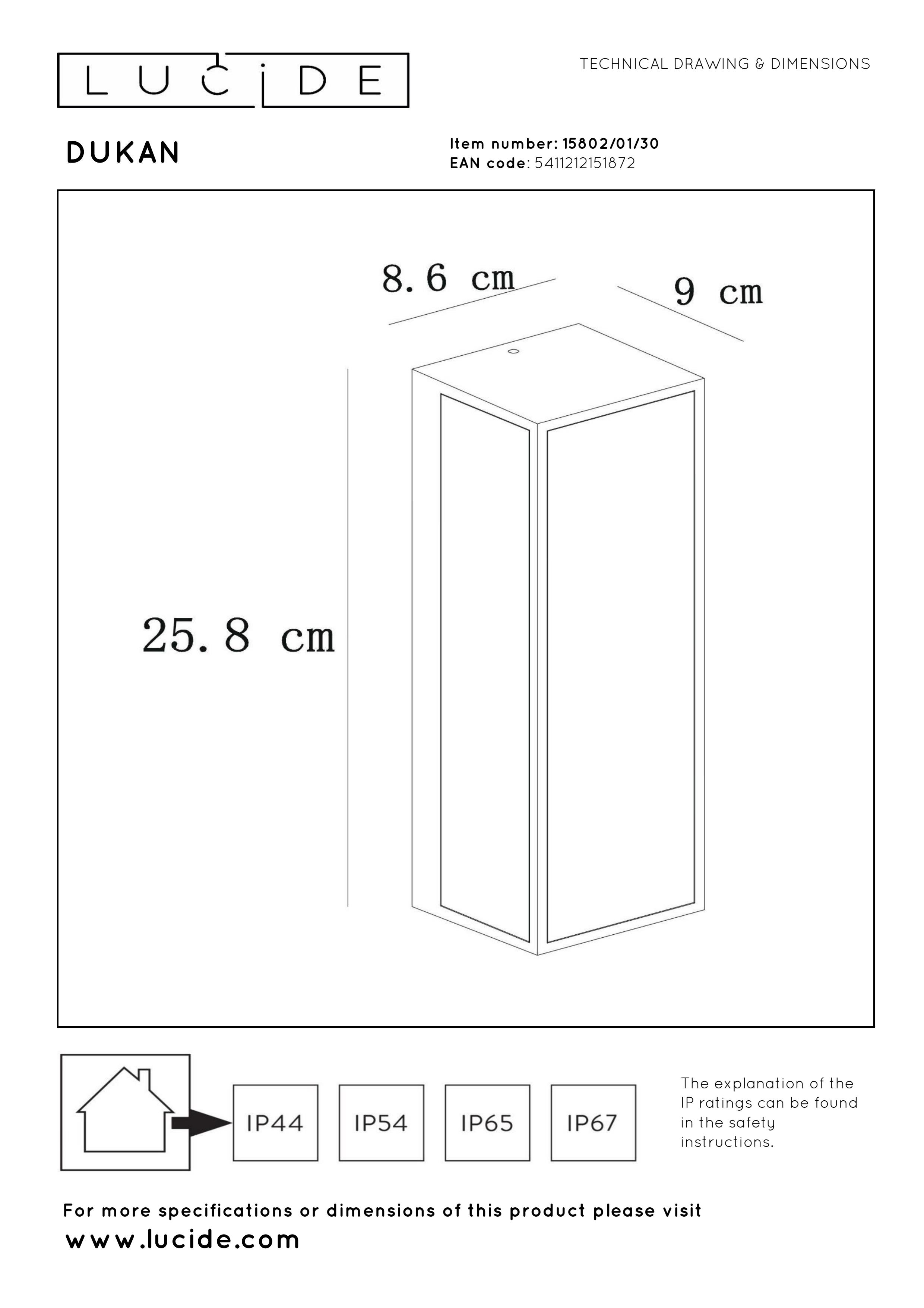 Dukan parece un objeto listo para colocar en un museo: una fuente de luz contenida en un elegante marco negro. Este aplique de pared es adecuado para su uso en exterior a largo plazo. Su diseño, que combina cristal de alta calidad y un marco rectangular de acero, mide 25,8 x 8,6 centímetros. Desprende un look sobrio y elegante que combina bien con una fachada moderna. Pero gracias a su diseño atemporal, esta iluminación de exterior también queda fantástica en una casa de estilo clásico. Combínala con una bombilla led adecuada y su luz creará la atmósfera ideal para recibir a los invitados que llamen a tu puerta. El aplique dispone de una fina placa de montaje que permite instalarlo fácilmente en la pared de la fachada. Además, Dukan se puede conectar fácilmente a un regulador de luz.