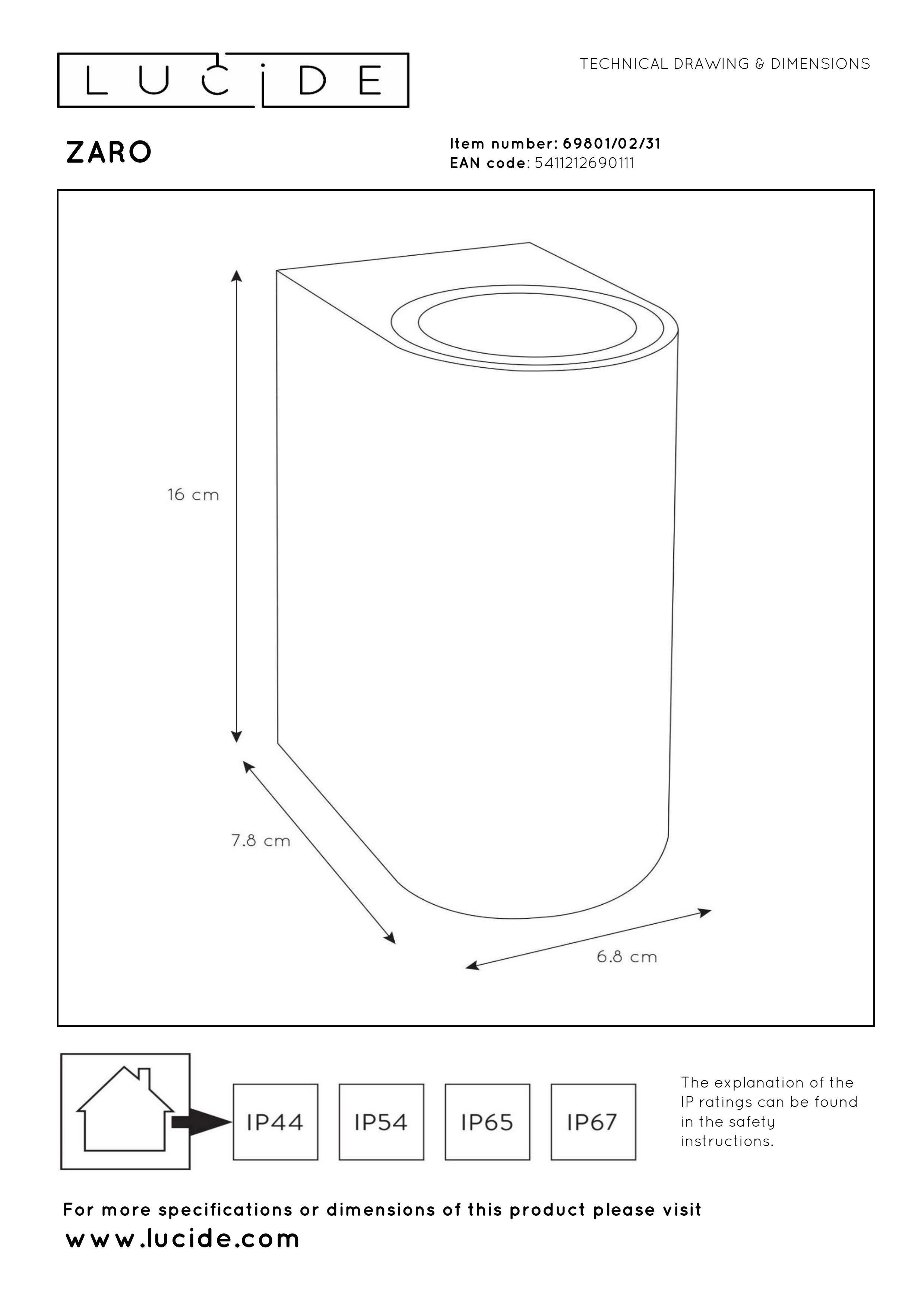 Lucide ZARO - Foco de pared / Lámpara de pared Dentro/Fuera - 2xGU10 - IP44 - Blanco
