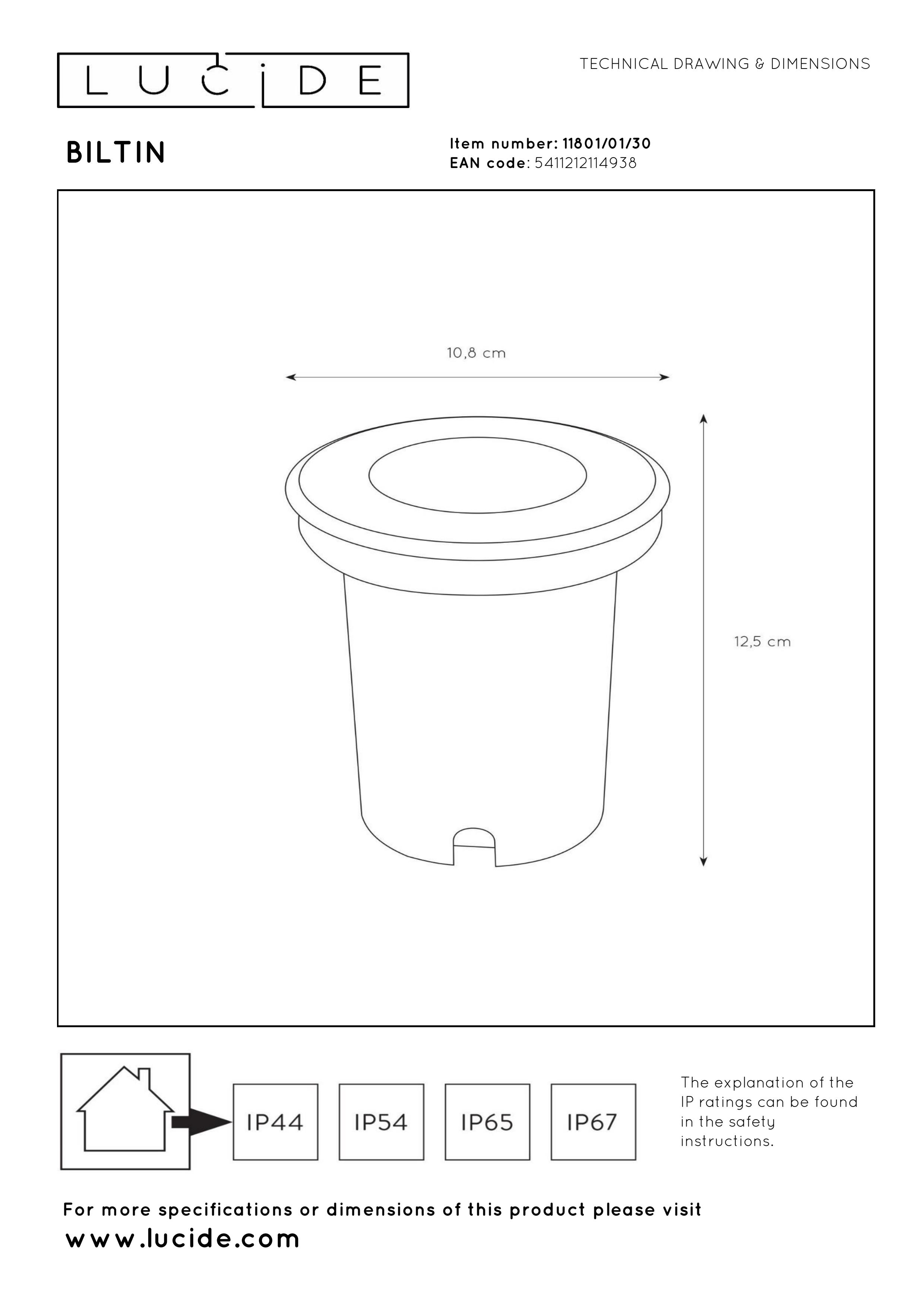 Lucide BILTIN - Foco de suelo Dentro/Fuera - Ø 10,8 cm - 1xGU10 - IP67 - Negro