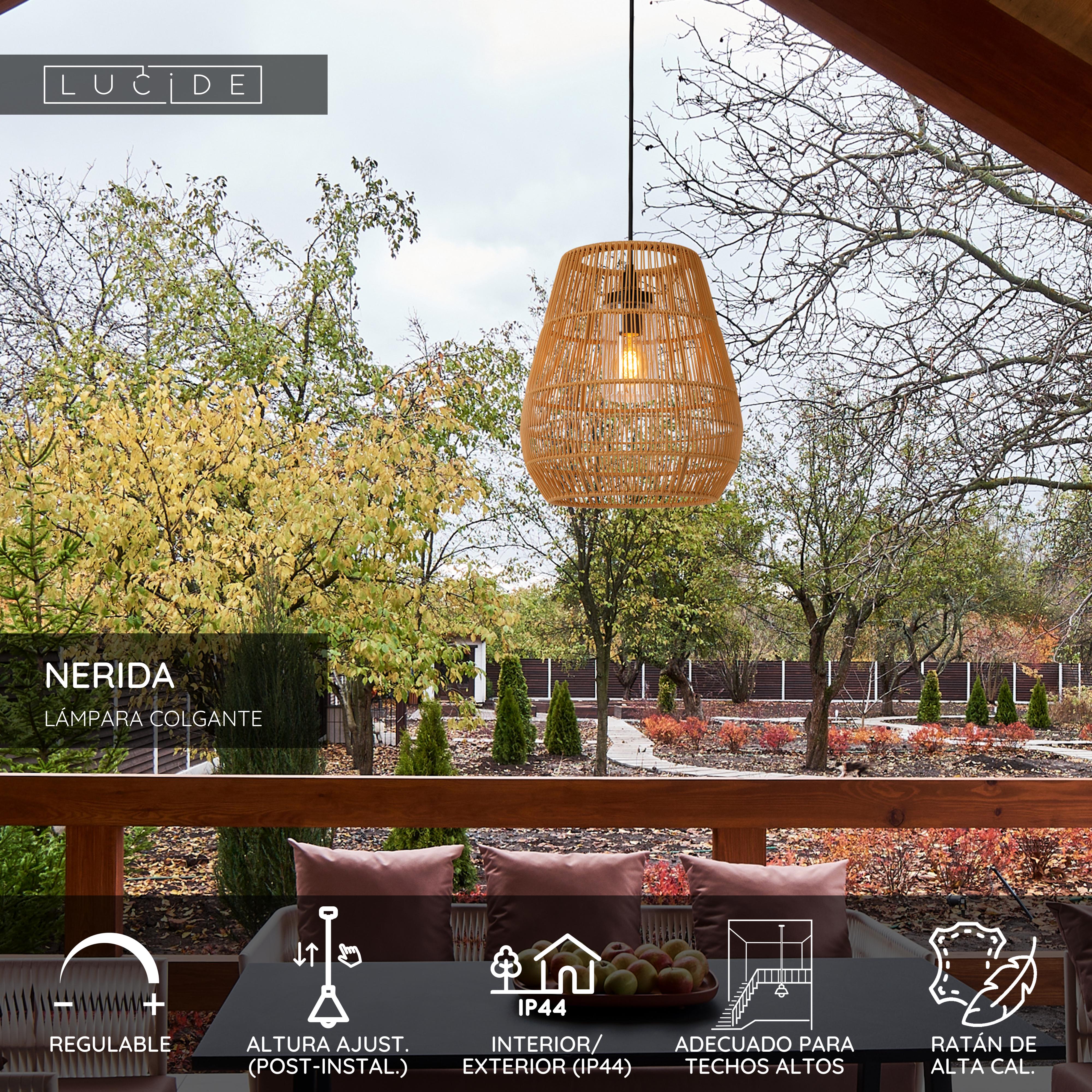 Lucide NERIDA - Lámpara colgante Dentro/Fuera - Ø 35 cm - 1xE27 - IP44 - Adecuado para dobles alturas y techos altos - Natural