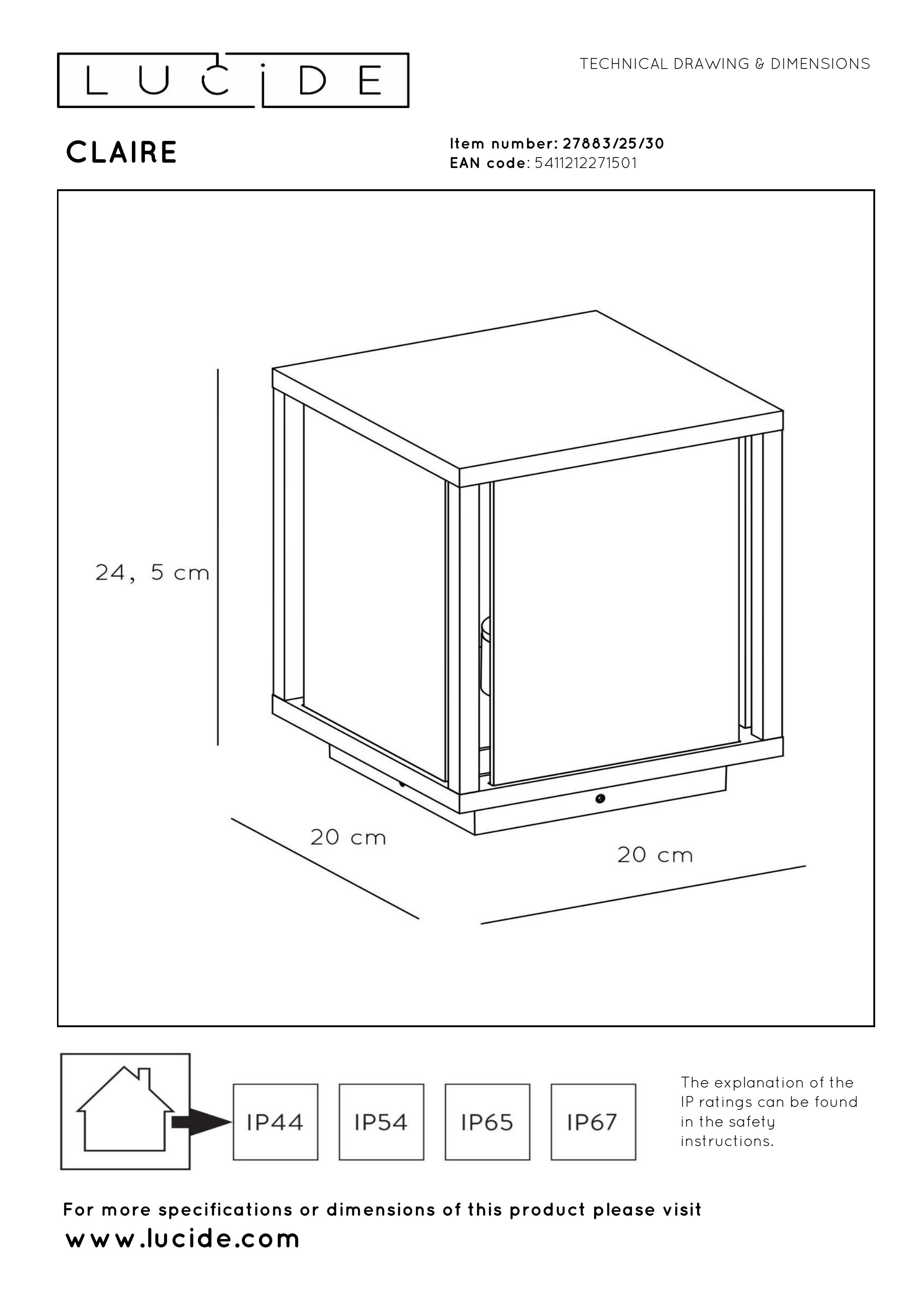 Lucide CLAIRE - Lámpara baliza - 1xE27 - IP54 - Antracita