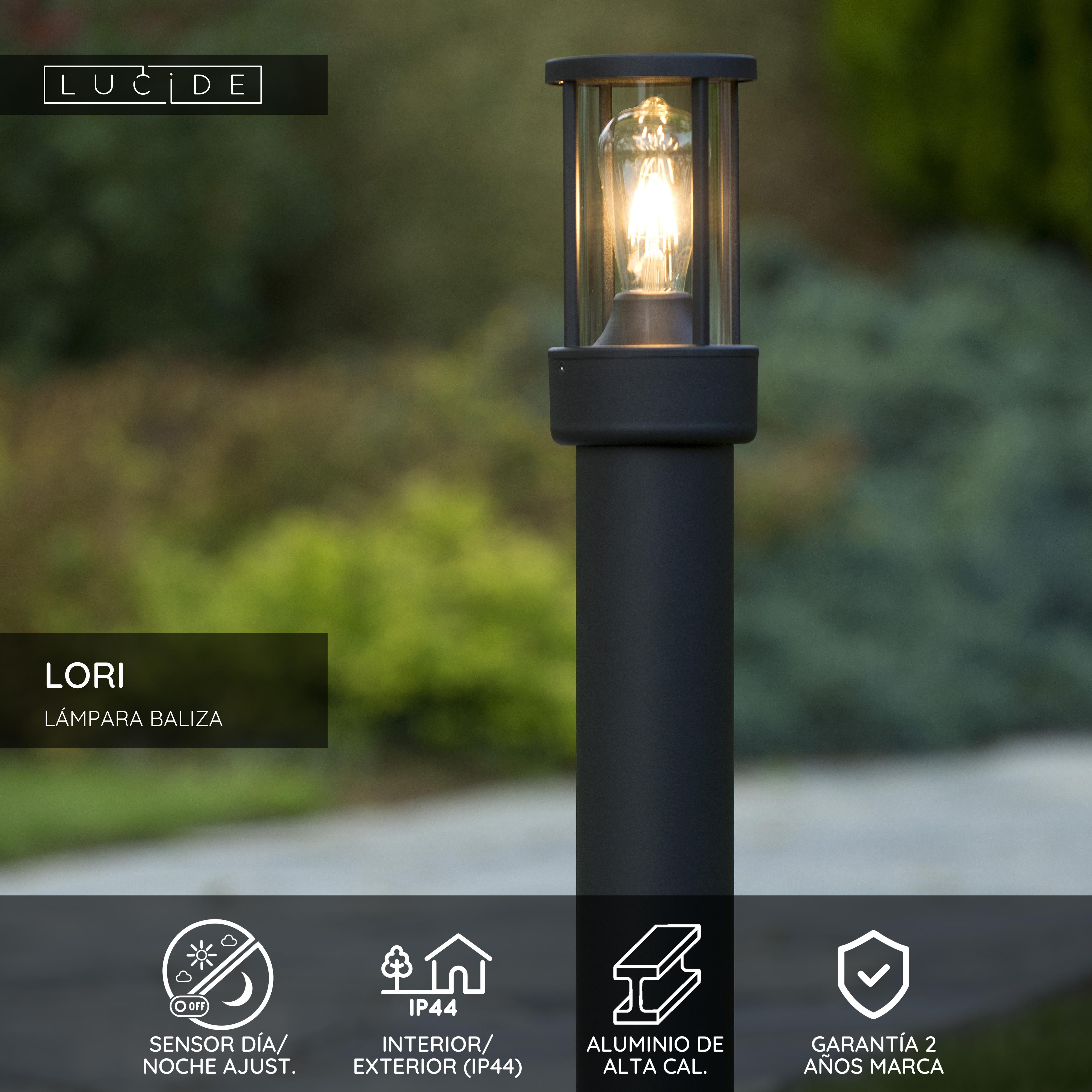Lucide LORI - Lámpara baliza - 1xE27 - IP44 - Sensor día/noche - Antracita