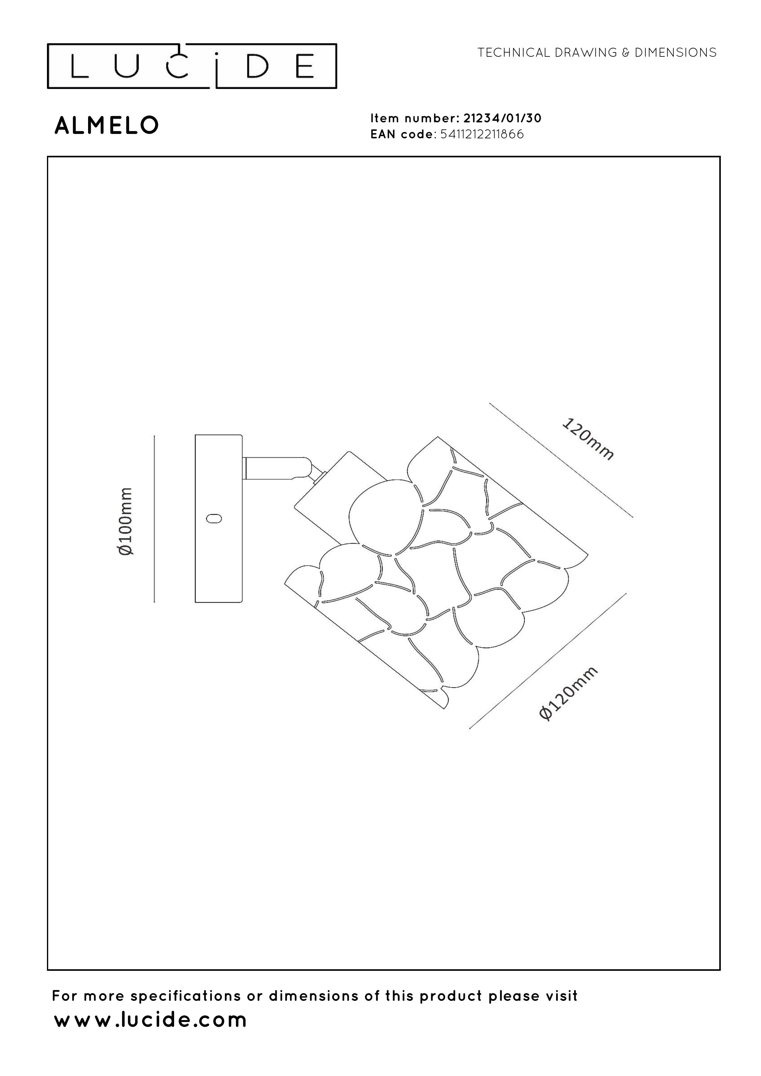 Lucide ALMELO - Foco de pared / Lámpara de pared - Ø 12 cm - 1xE14 - Negro