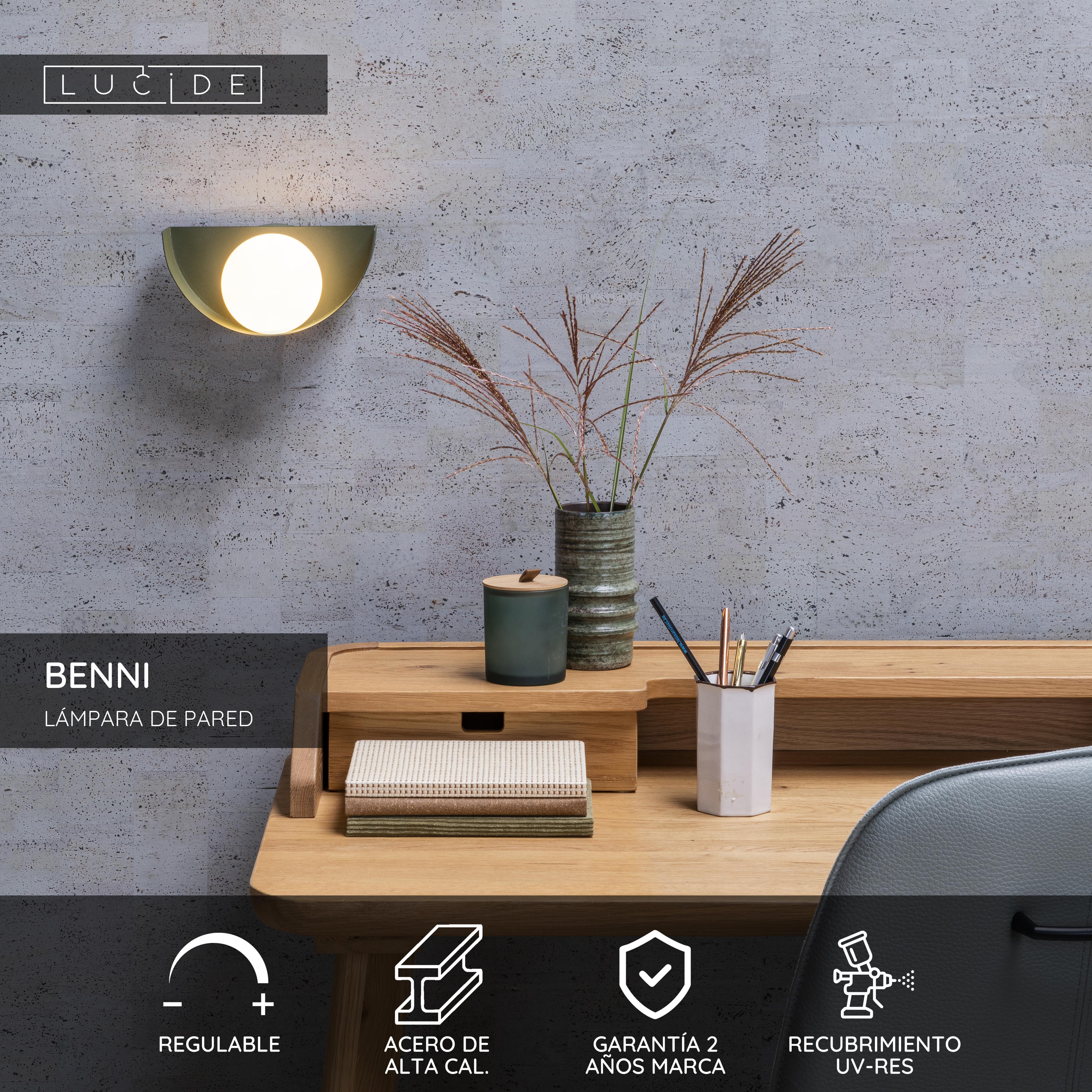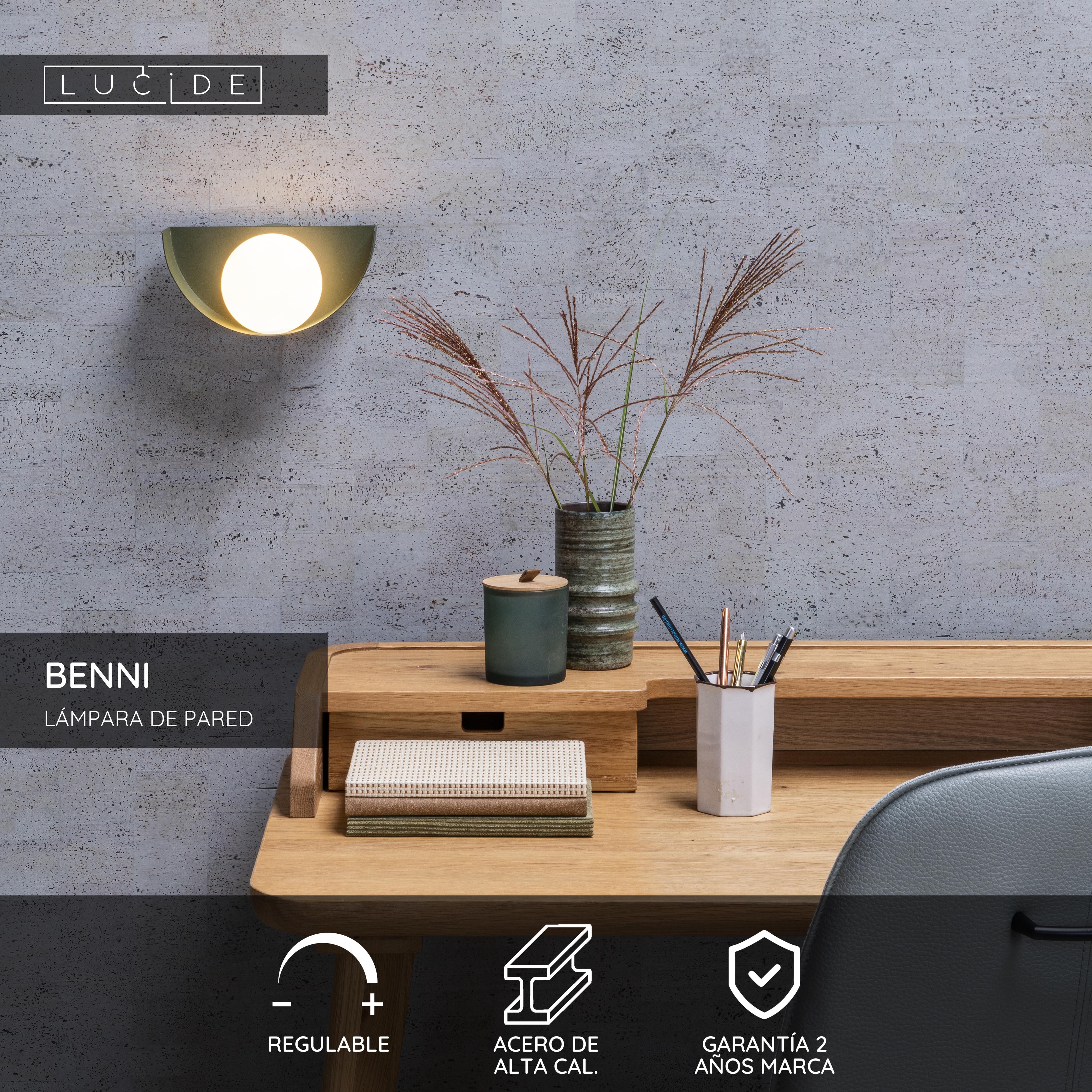 ¿Buscas un aplique de pared que atraiga todas las miradas? Con Benni le aportarás a tu hogar mucho más que luz. Esta lámpara de pared es muy decorativa. Cuenta una bombilla de ópalo y un armazón circular de acero de alta calidad. Proporciona la dosis adecuada de iluminación en un pasillo, cabecero de cama o sala de estar. Gracias a su volumen compacto de 21 centímetros de largo y 12 centímetros de ancho, Benni es una lámpara que no abruma y proporciona una iluminación de acento con un toque divertido. Puedes ajustar su brillo mediante un regulador de luz externo. Así le darás a tu espacio la luz ambiental acogedora que deseas.