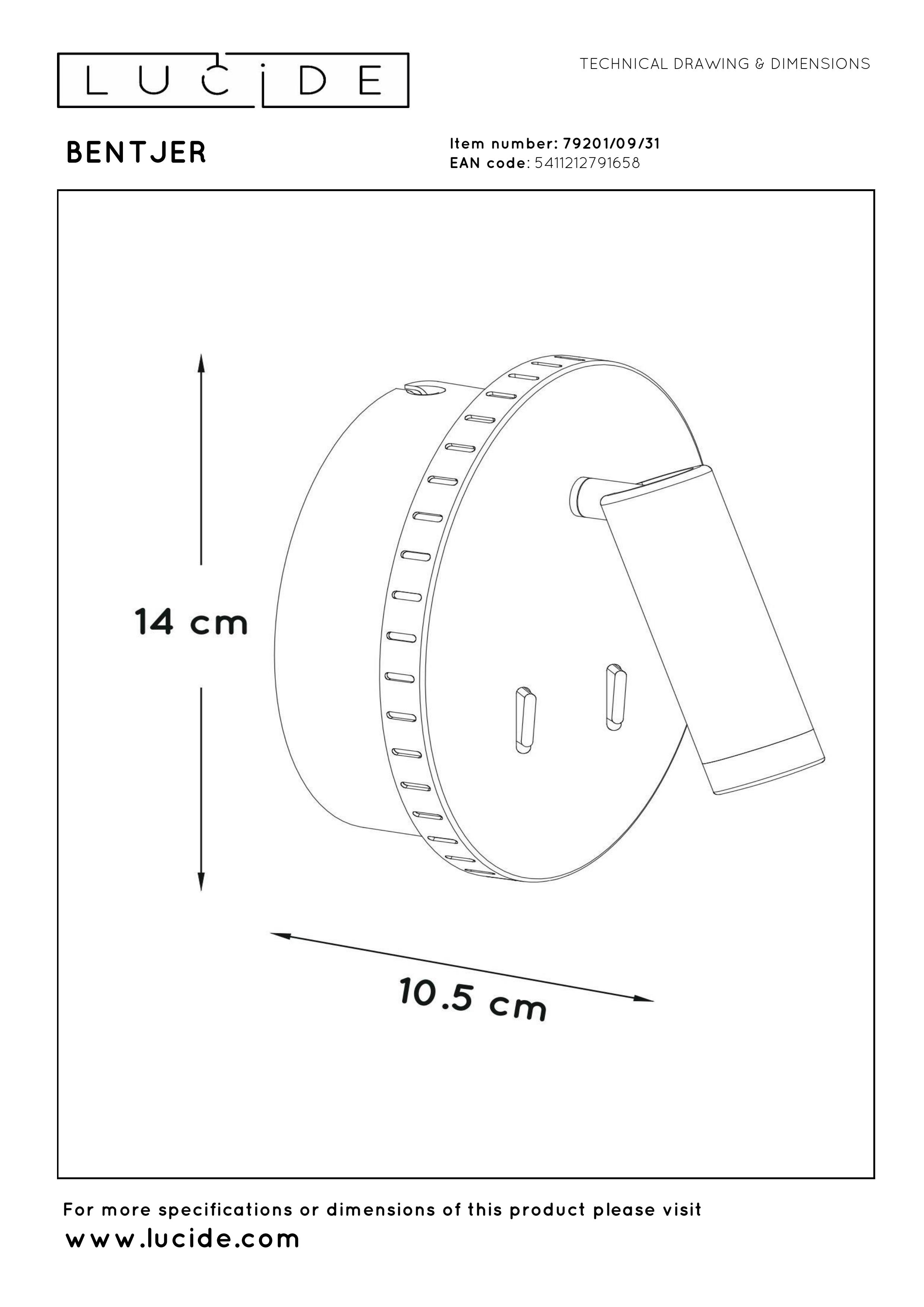 Lucide BENTJER - Lámpara de cabecera / Lámpara de pared - Ø 14 cm - LED - 3000K - Blanco