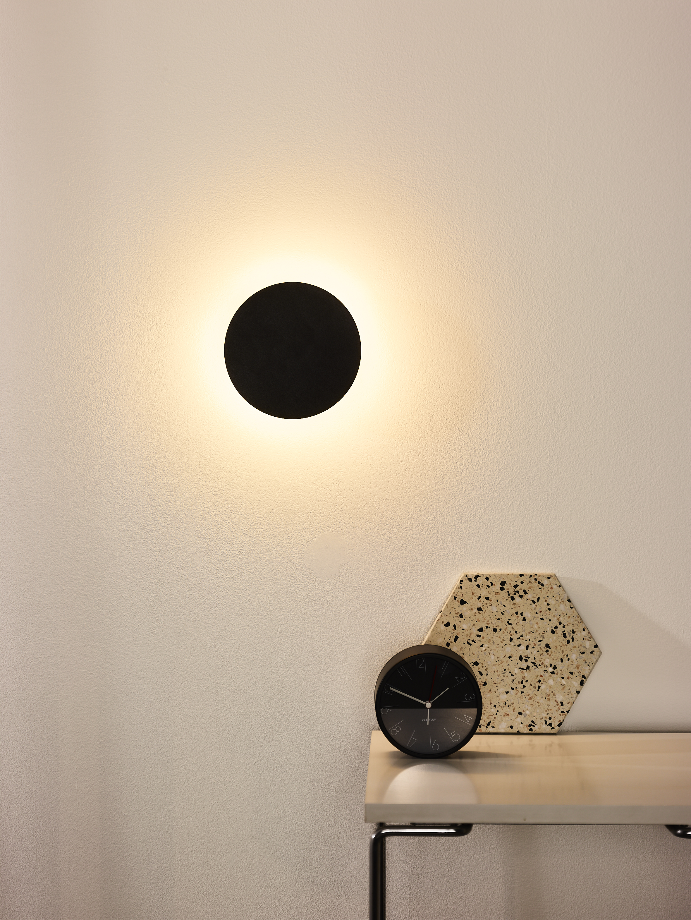 Una cálida luz atmosférica en tu techo o muro. Así es Eklyps LED. Su uso es flexible: siéntete libre de utilizarla como lámpara de pared o de techo. Su tamaño es bastante pequeño y proporciona un brillo cálido a su alrededor en la superficie donde se instala. Su fuente de iluminación permanece oculta tras un elegante disco de metal. Una vez encendida, el disco se convierte en un resplandor que se expande y que proporciona una agradable iluminación de acento. Su base está fabricada en aluminio y es muy fácil de instalar en la pared o techo. Su iluminación led integrada hace el resto. La lámpara Eklyps LED encaja perfectamente en interiores arquitectónicos de diseño contemporáneo. Y, sobre todo, se adapta a cualquier espacio. Con ella podrás añadir un toque de color a tu comedor, aseo de invitados, recibidor o salón. Es un complemente perfecto.