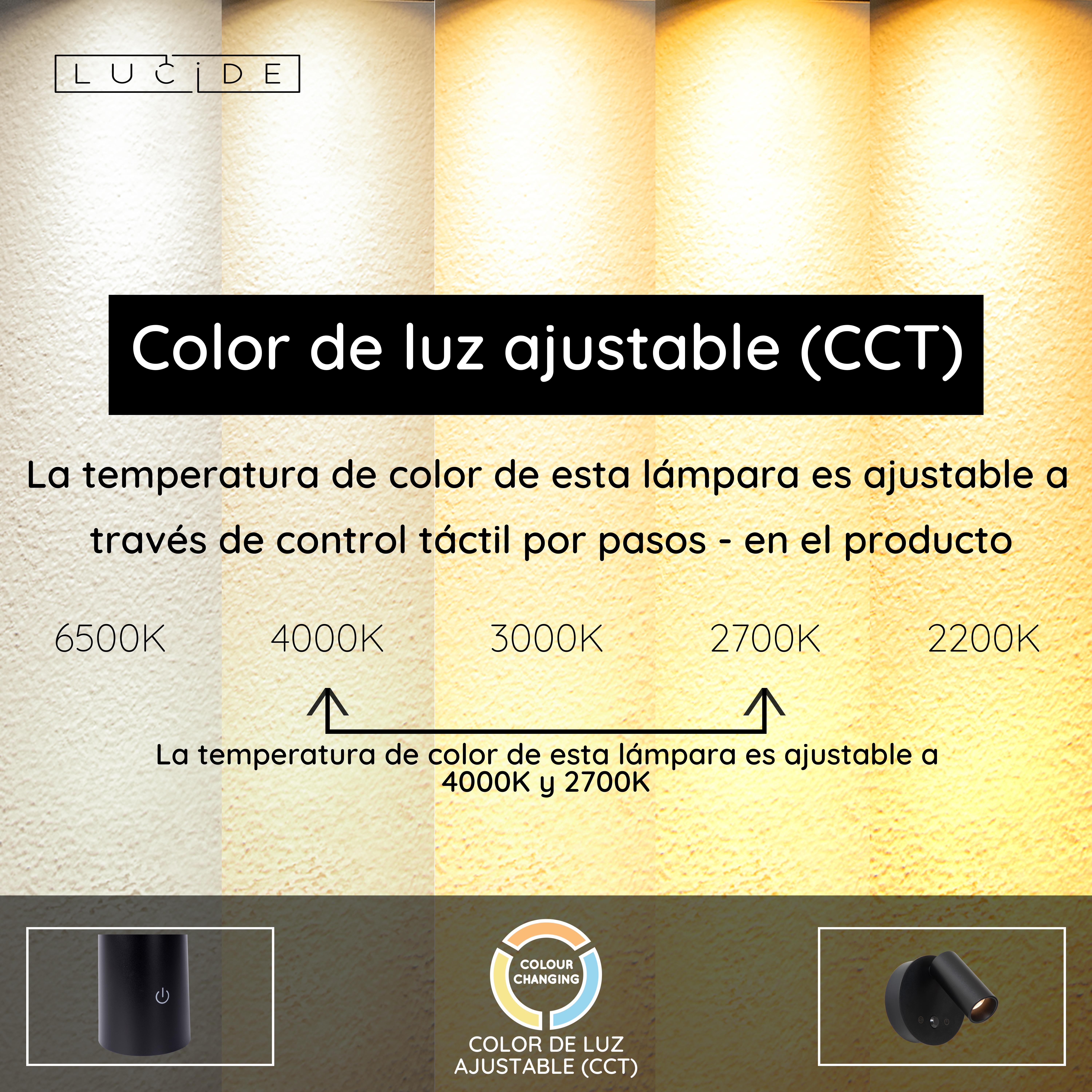 - Temperatura de color ajustable mediante control táctil por pasos en el producto (2700K-4000K)