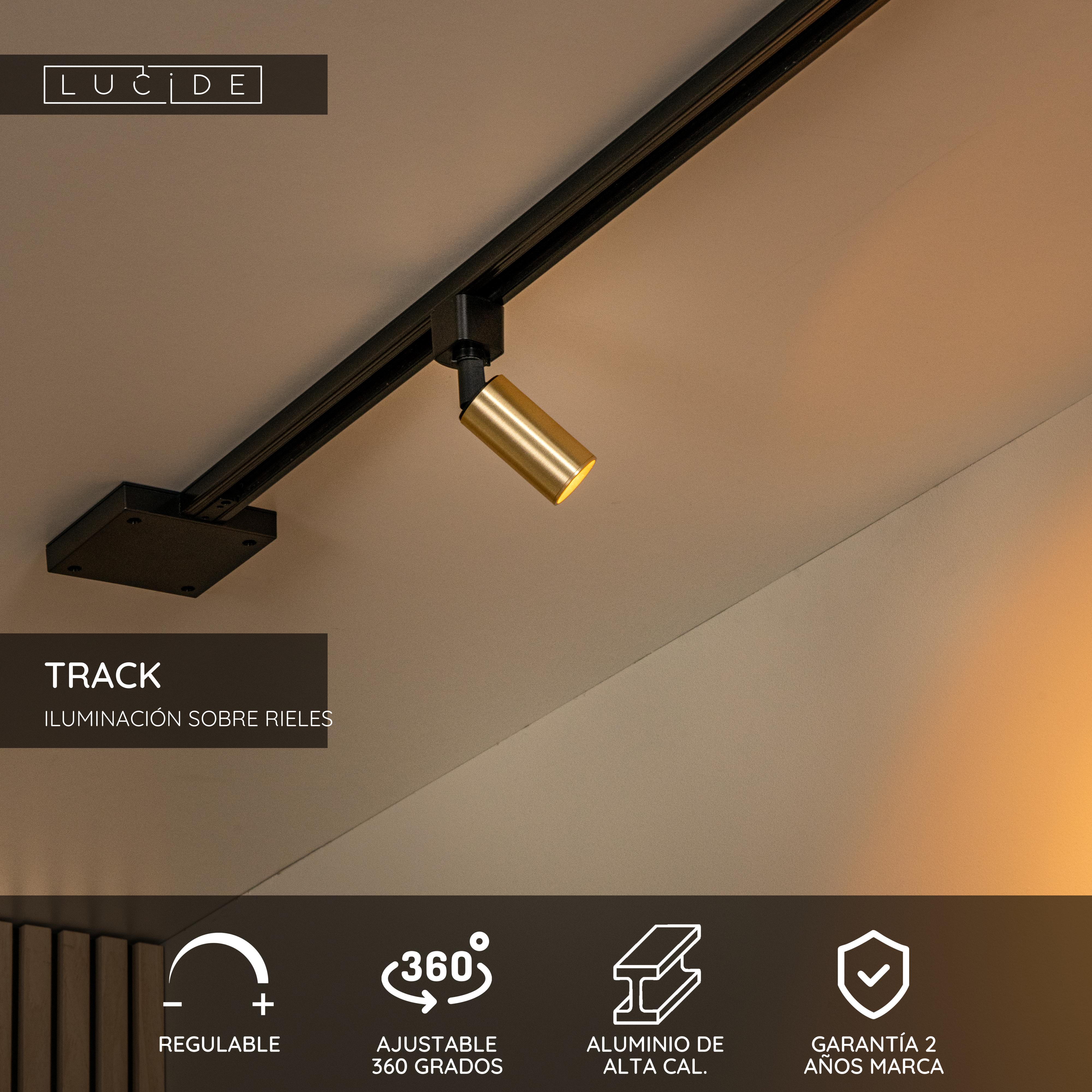 Lucide TRACK RITMO Foco de riel - Sistema de carril monofásico / Iluminación con rieles - 1xGU10/MR11 - Oro mate / Latón (Extensión)