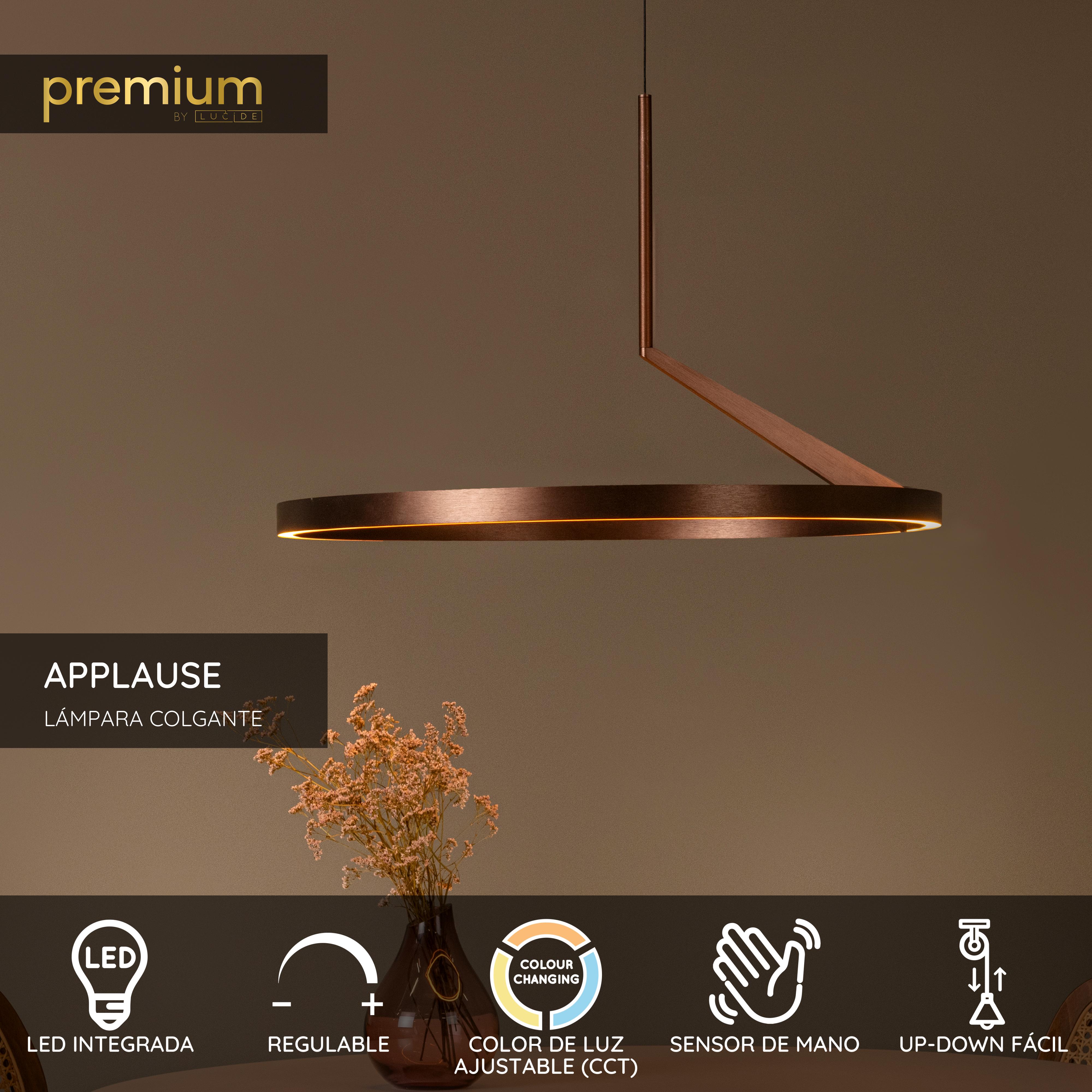 Lucide APPLAUSE - Lámpara colgante - Ø 60 cm - LED Regul. - CCT - 1x32W 2700K/4000K - Sensor de movimiento de mano - Café | Premium