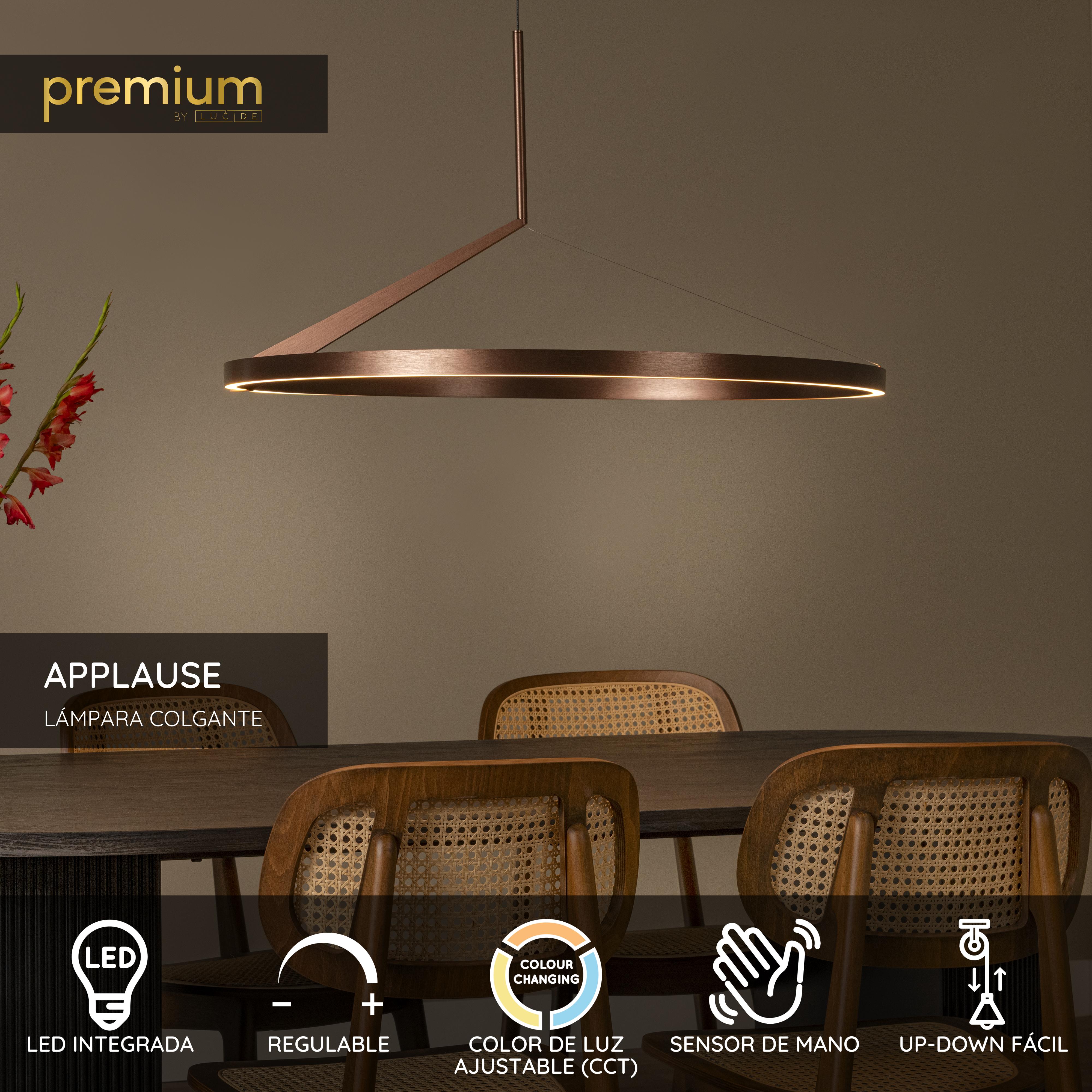 Lucide APPLAUSE - Lámpara colgante - Ø 80 cm - LED Regul. - CCT - 1x50W 2700K/4000K - Sensor de movimiento de mano - Café | Premium