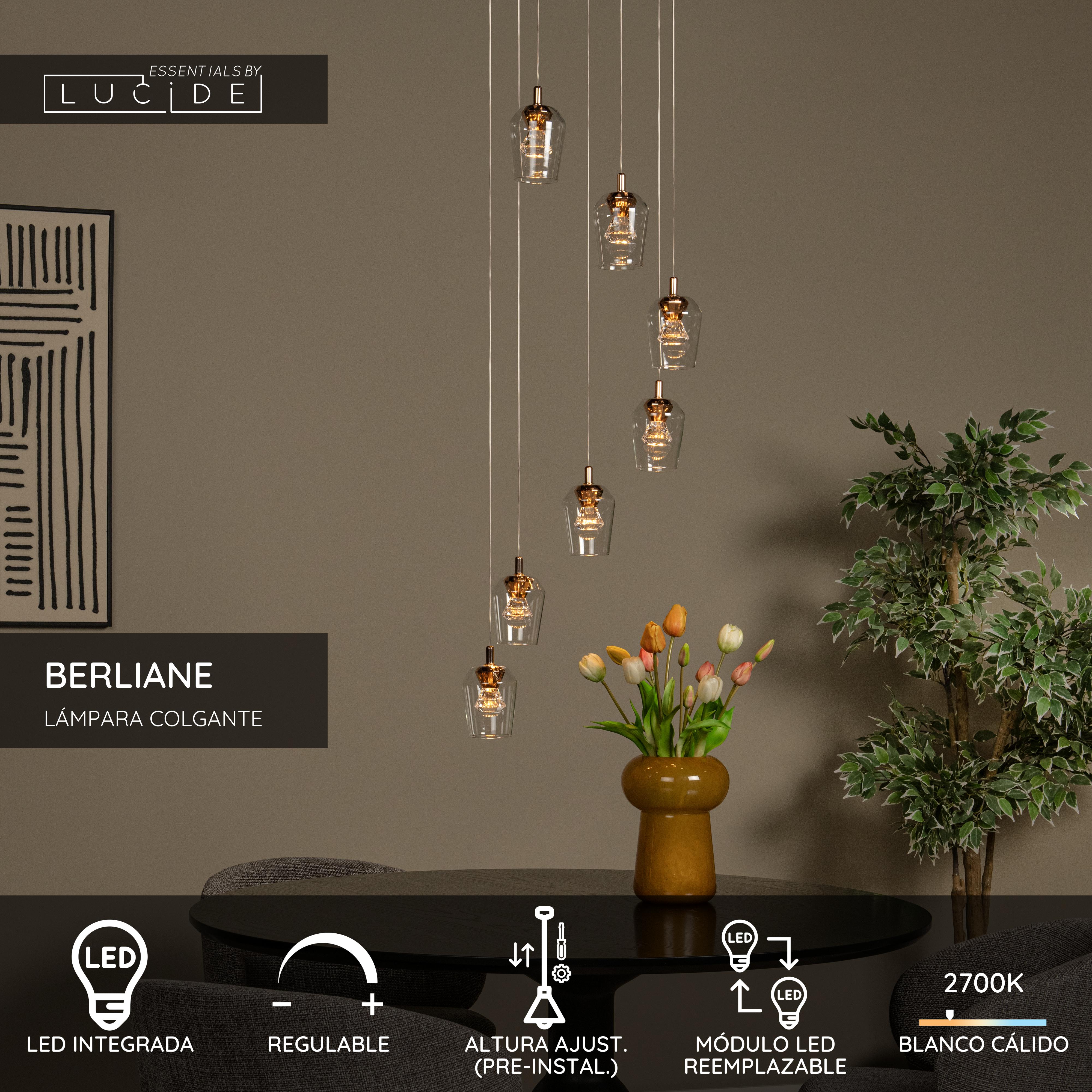 Lucide BERLIANE - Lámpara colgante - Ø 39 cm - LED Regul. - 7x4W 2700K - Con módulo LED reemplazable - Transparente | Essential