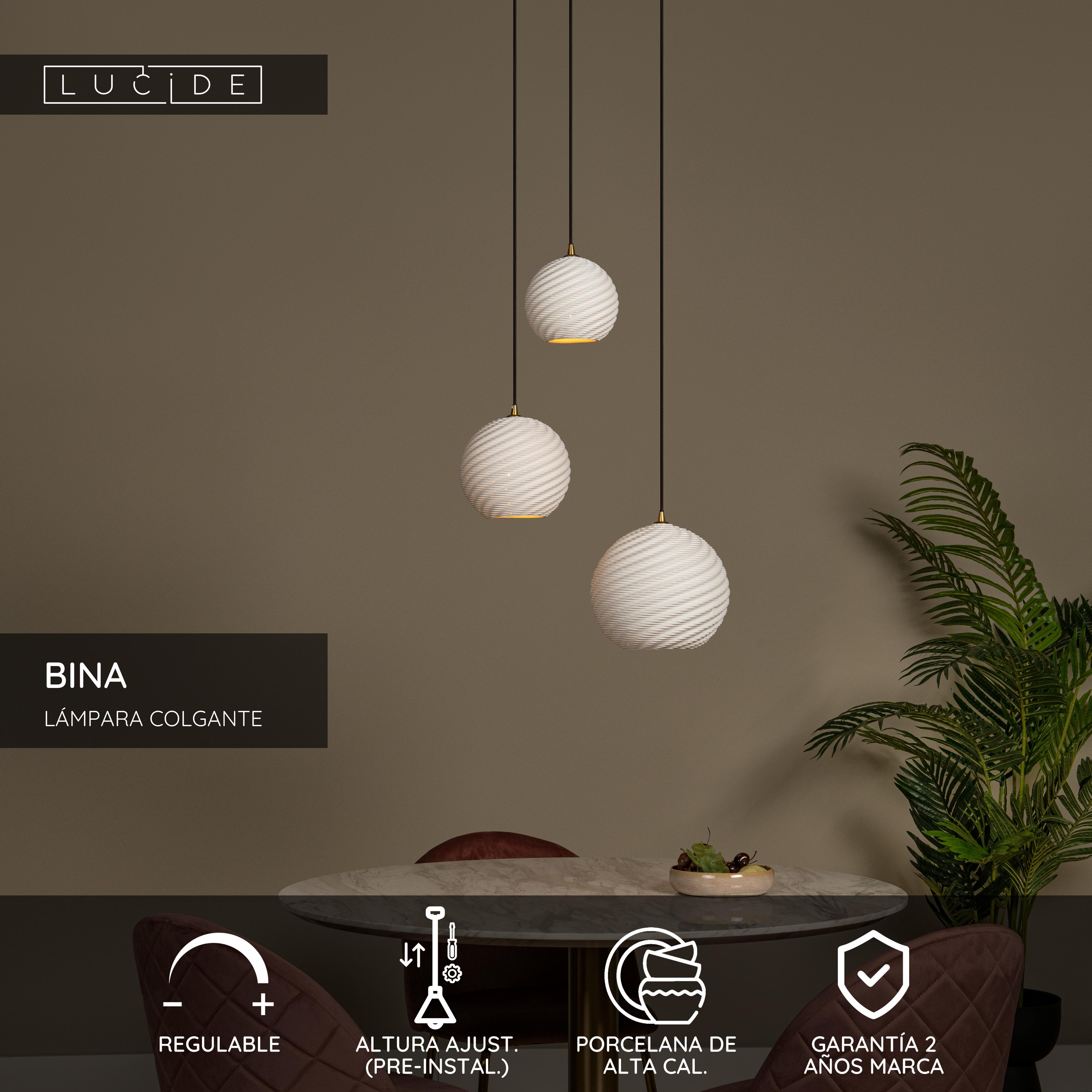 Bina confiere un ambiente suave a la habitación con su agradable conjunto de lámparas colgantes con pantallas de porcelana. Los motivos decorativos recortados en las pantallas crean un sutil efecto de iluminación. Las lámparas colgantes son regulables en altura y pueden conectarse fácilmente a un regulador de intensidad externo. Tanto si elige colgar Bina en el centro de su salón o comedor, como si la utiliza para iluminar un rincón de su dormitorio o pasillo, la habitación adquirirá al instante un aspecto más sereno y relajado, así como usted y sus invitados.
