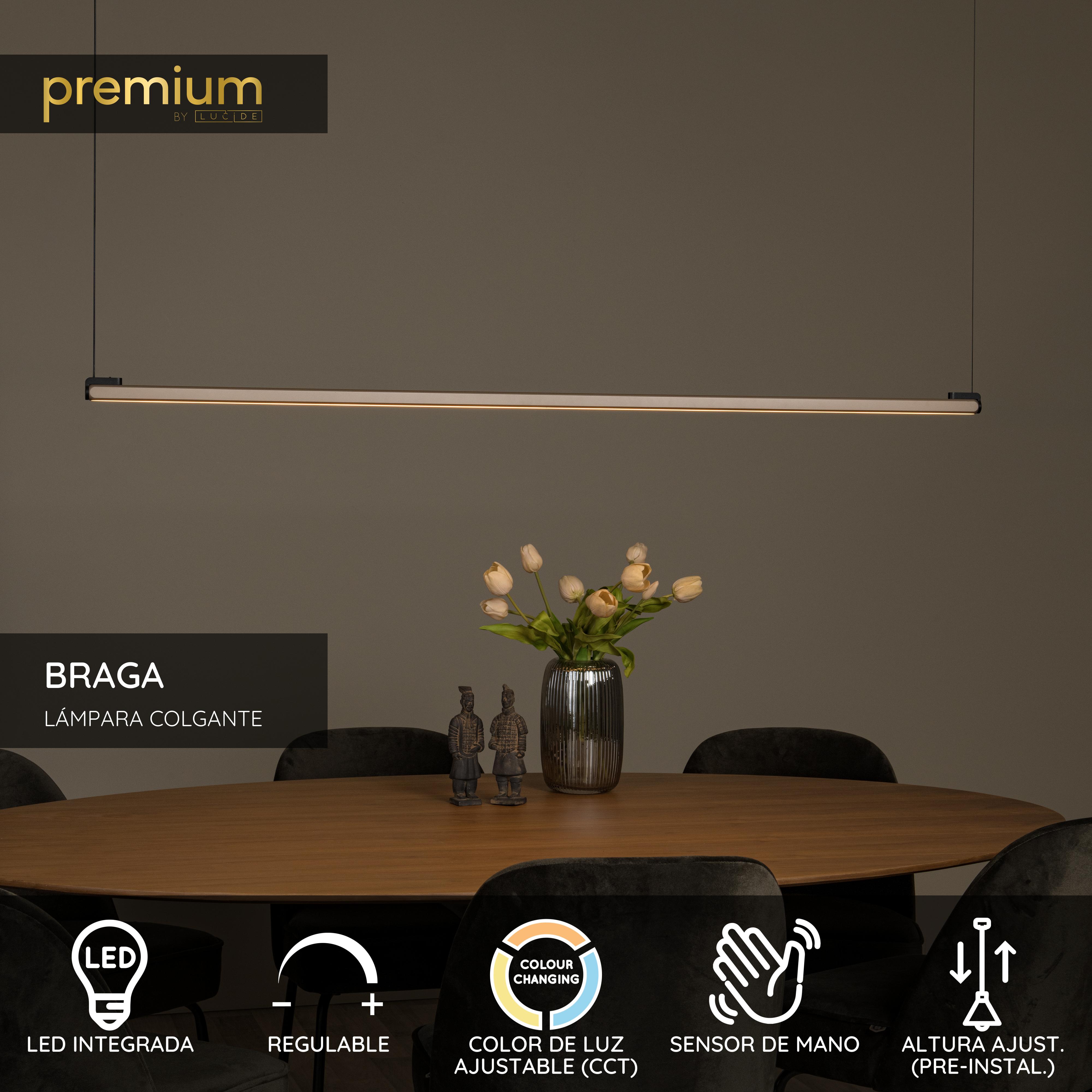 Añade un toque de lujo a tu interior con la lámpara colgante Lucide BRAGA de la colección Premium. Esta moderna y elegante lámpara está fabricada en aluminio de alta calidad y cuenta con un sofisticado acabado en marrón café. Con su diseño rectangular estilizado y su iluminación LED integrada, BRAGA ofrece una fuente de luz sutil pero impactante para comedores, cocinas o salones. Gracias al sensor de movimiento, la temperatura de color ajustable (2700K-4000K) y la función de atenuación, puedes modificar la intensidad y la temperatura de la luz con un simple gesto, creando el ambiente perfecto, desde una luz blanca cálida hasta una luz de trabajo brillante. Con una longitud de 150 cm, un ancho de 5 cm y una altura de 207,9 cm, esta lámpara colgante se adapta perfectamente sobre una mesa de comedor o una isla de cocina. Además, es ajustable en altura durante la instalación, permitiéndote configurarla a tu gusto. Disfruta de la combinación de tecnología avanzada y diseño refinado con la lámpara colgante Lucide BRAGA. ¡Pídela hoy mismo y mejora tu interior con una iluminación de alta calidad!
