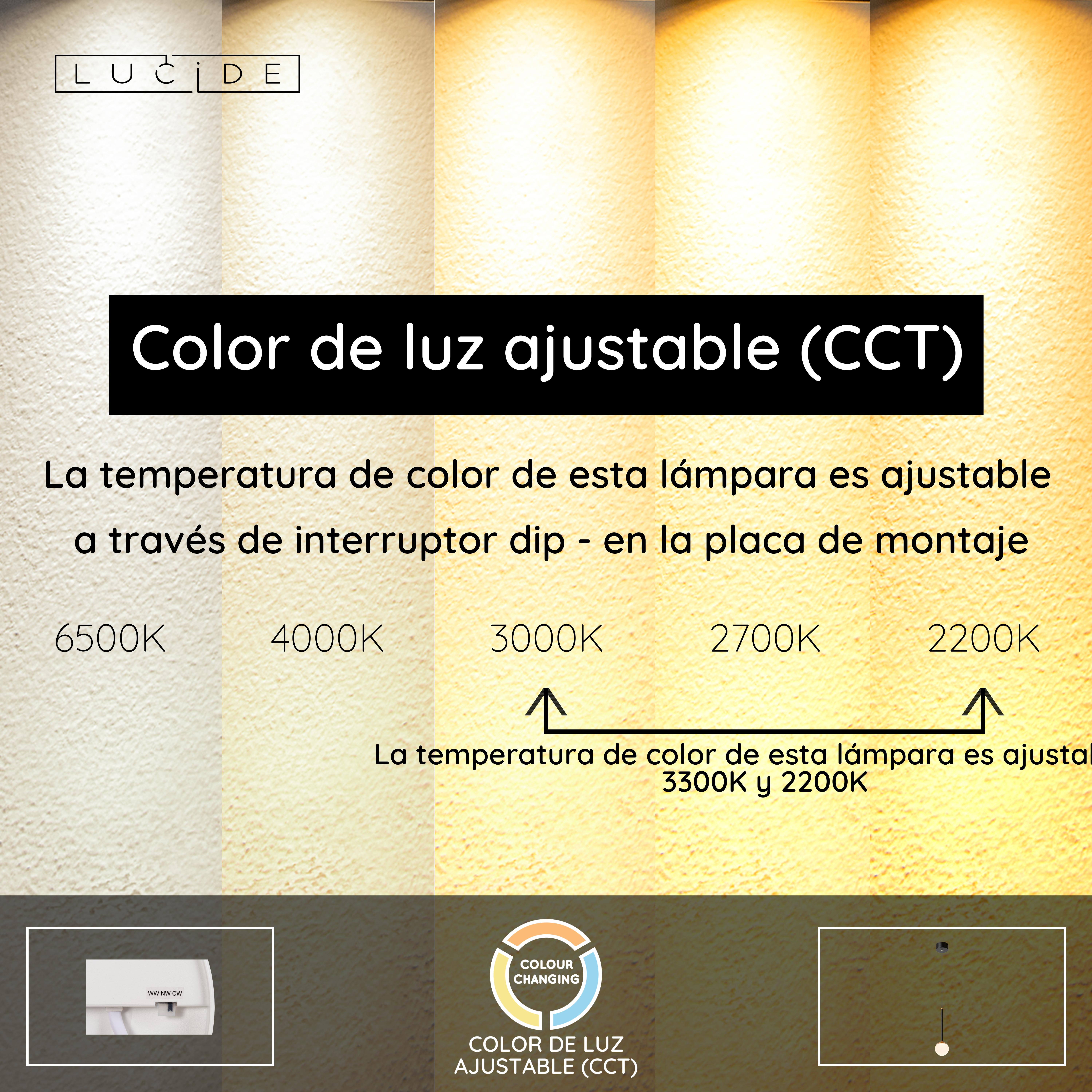 - Temperatura de color ajustable mediante interruptor dip en la placa de montaje (2200K-3300K)
