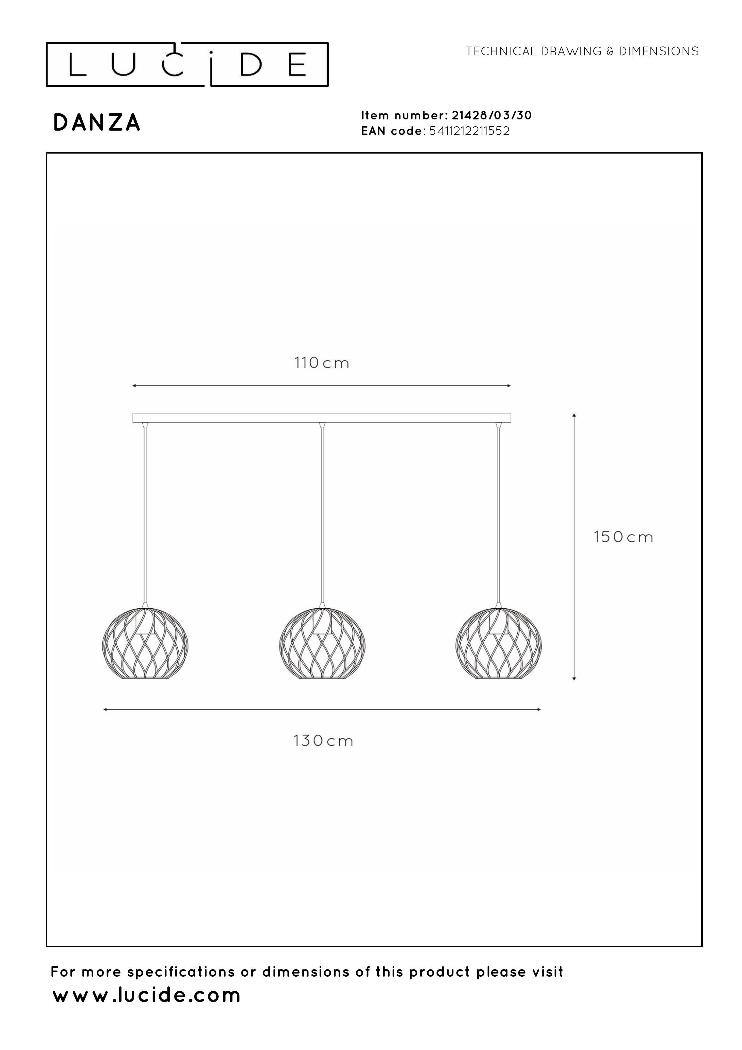 Dirige toda la atención sobre tu mesa de comedor o la isla de la cocina, con esta elegante lámpara de techo. Su nombre es Danza. Esta lámpara colgante transforma con 3 focos de luz la iluminación perfecta en la mesa. Cada pantalla con forma de bola está formada de finos cables metálicos y retorcidos con una estructura abierta. Esto permite que las bombillas de filamento del modelo Danza luzcan en todo esplendor. ¿Necesitas mucha luz por la mañana o algo más de intimidad para tu velada con amigos? Gracias al regulador de la intensidad externo, podrás ajustarla a tu gusto. El modelo Danza tiene una longitud de 130 cm y una altura regulable máxima de 150 cm.