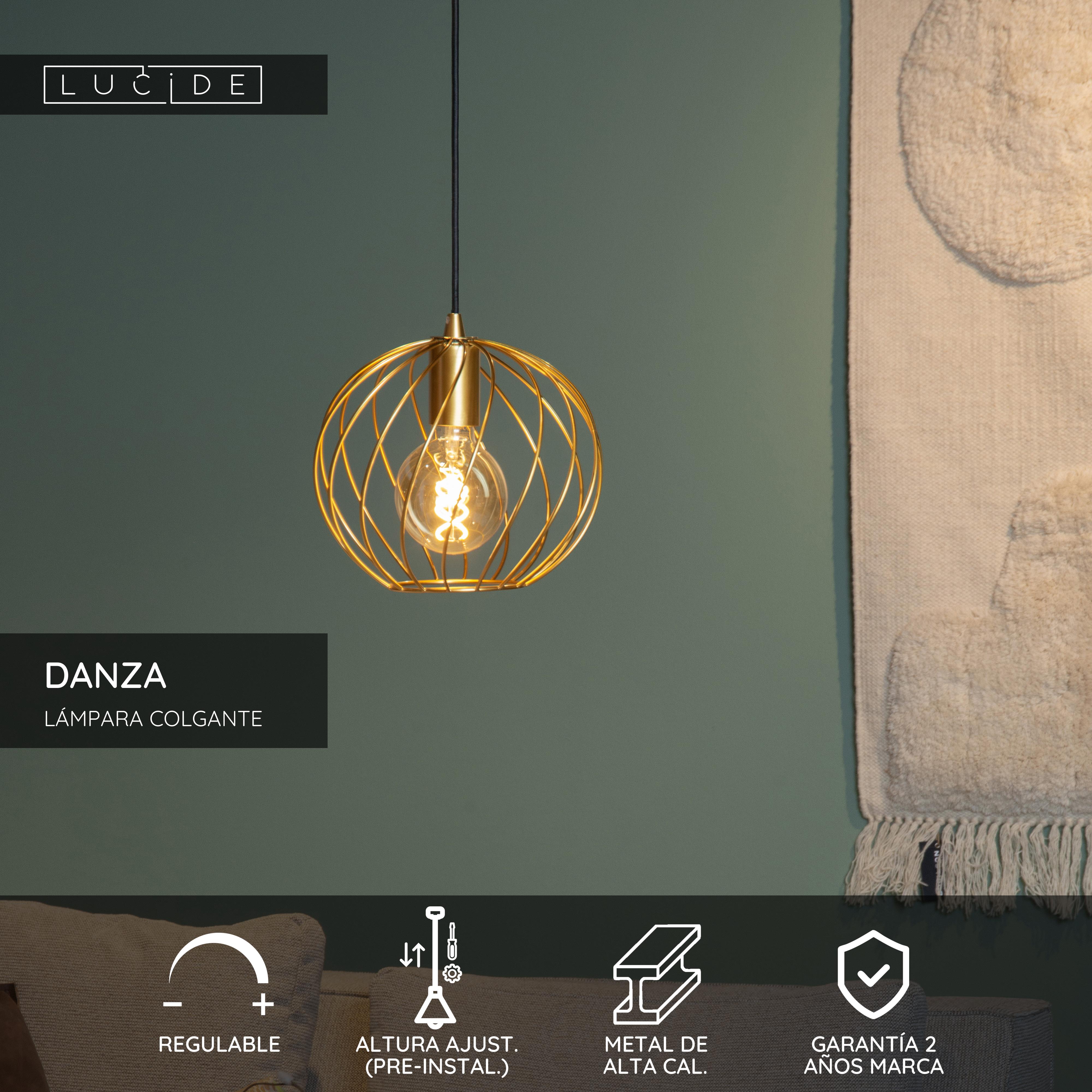 Introduce un rayito de luz a tu casa con el modelo Danza. La lámpara de techo de forma de bola se puede conectar fácilmente a un regulador de la intensidad de la luz externo. De esta manera, la lámpara Danza lucirá espectacular sobre la zona del comedor, en el acogedor salón y en la cómoda zona de descanso. Sus animadas líneas curvas crean un diseño único y aportan dinamismo a tu decoración. ¿Te atreves a dar un bailecito? Déjate cautivar por la luz de esta lámpara. Danza tiene un diámetro de 25 cm y su altura es fácilmente regulable, hasta un máximo de 150 cm.