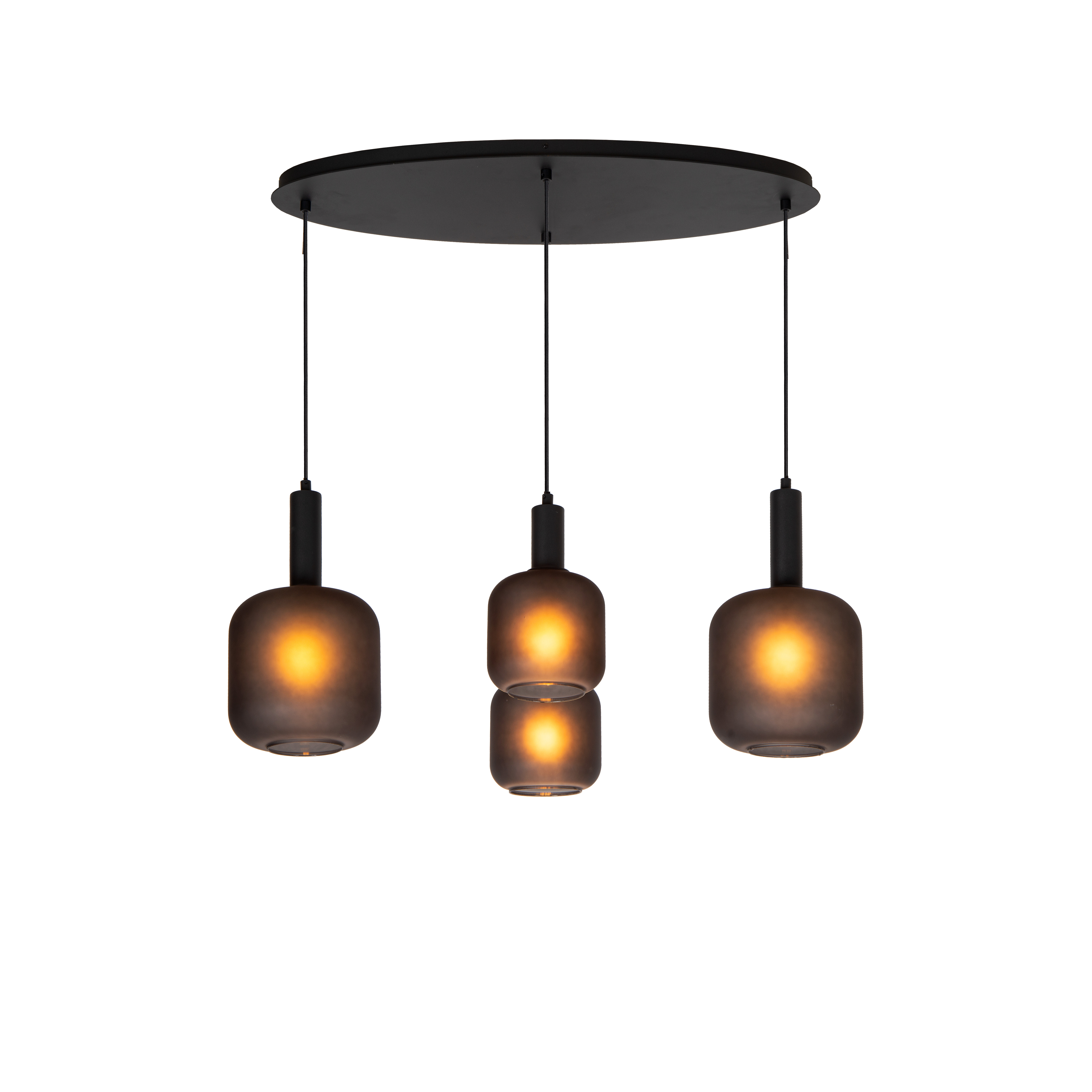 ¡Deja espacio para esta diva! Con 4 lámparas ovaladas, misteriosamente envueltas en cristal oscuro y equilibradas a diferentes longitudes, el modelo Eloise será el centro de todas las miradas en cualquier habitación. Queda perfecta en un gran recibidor o en el centro del salón. Tus visitas se deleitarán con esta lámpara. Los cables de tela son ajustables, para que puedas elegir la longitud que te resulte más cómoda para tu hogar, hasta un máximo de 93 centímetros. ¿Reservarás un espacio para esta moderna lámpara colgante?