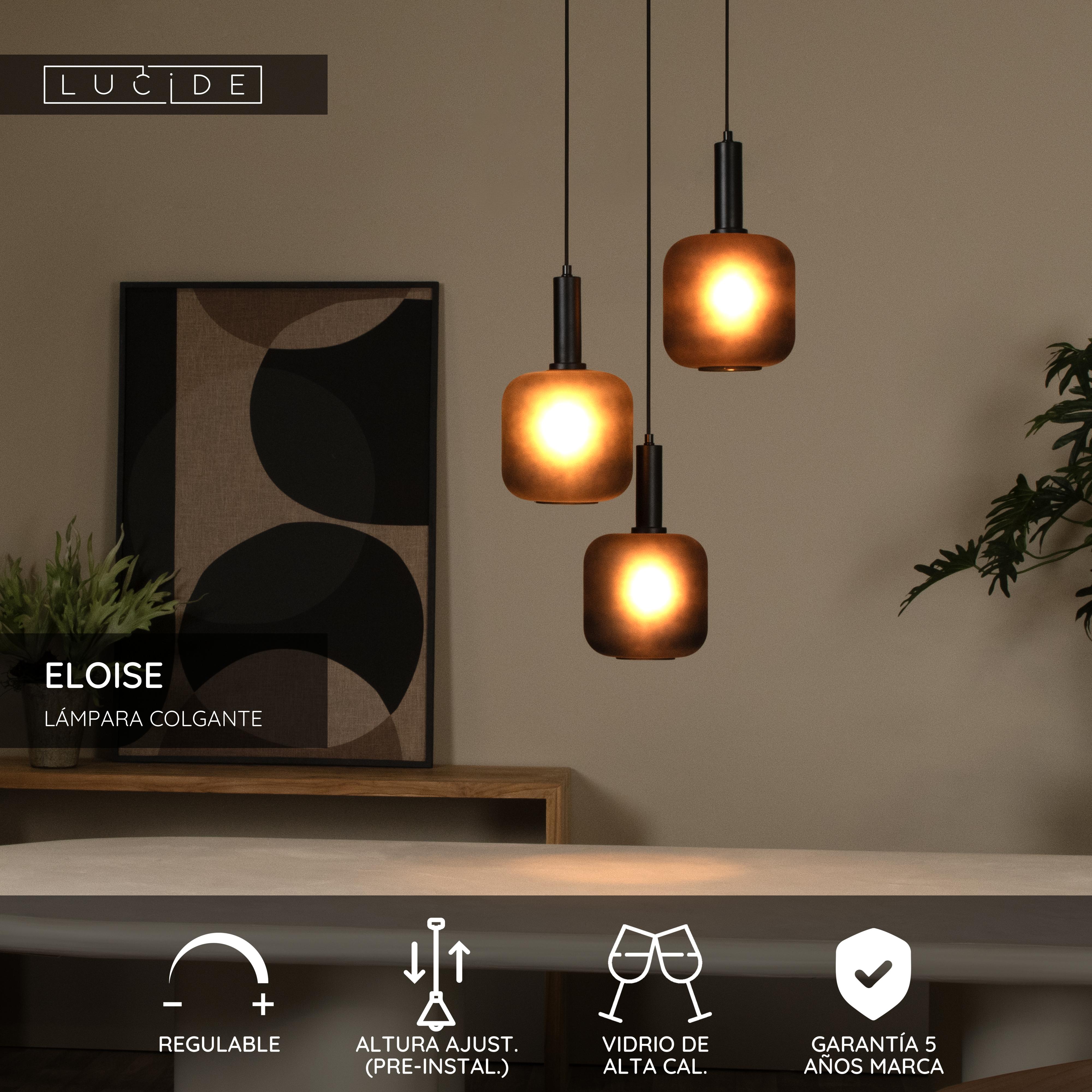 Placentera, íntima o seria: el modelo Eloise dará el toque a tu salón, con 3 colgantes de cristal fumé, metal de alta calidad y un cable ajustable de tela. Las lámparas colgantes, de 21 centímetros de diámetro cada una, son de cristal de alta calidad. La lámpara puede servir tanto para atraer las miradas como para crear un rincón acogedor, y sirve para un diámetro de 40 centímetros. Conecta esta espectacular lámpara colgante a un regulador de intensidad no incluido y crea ambiente para tu próxima cena.