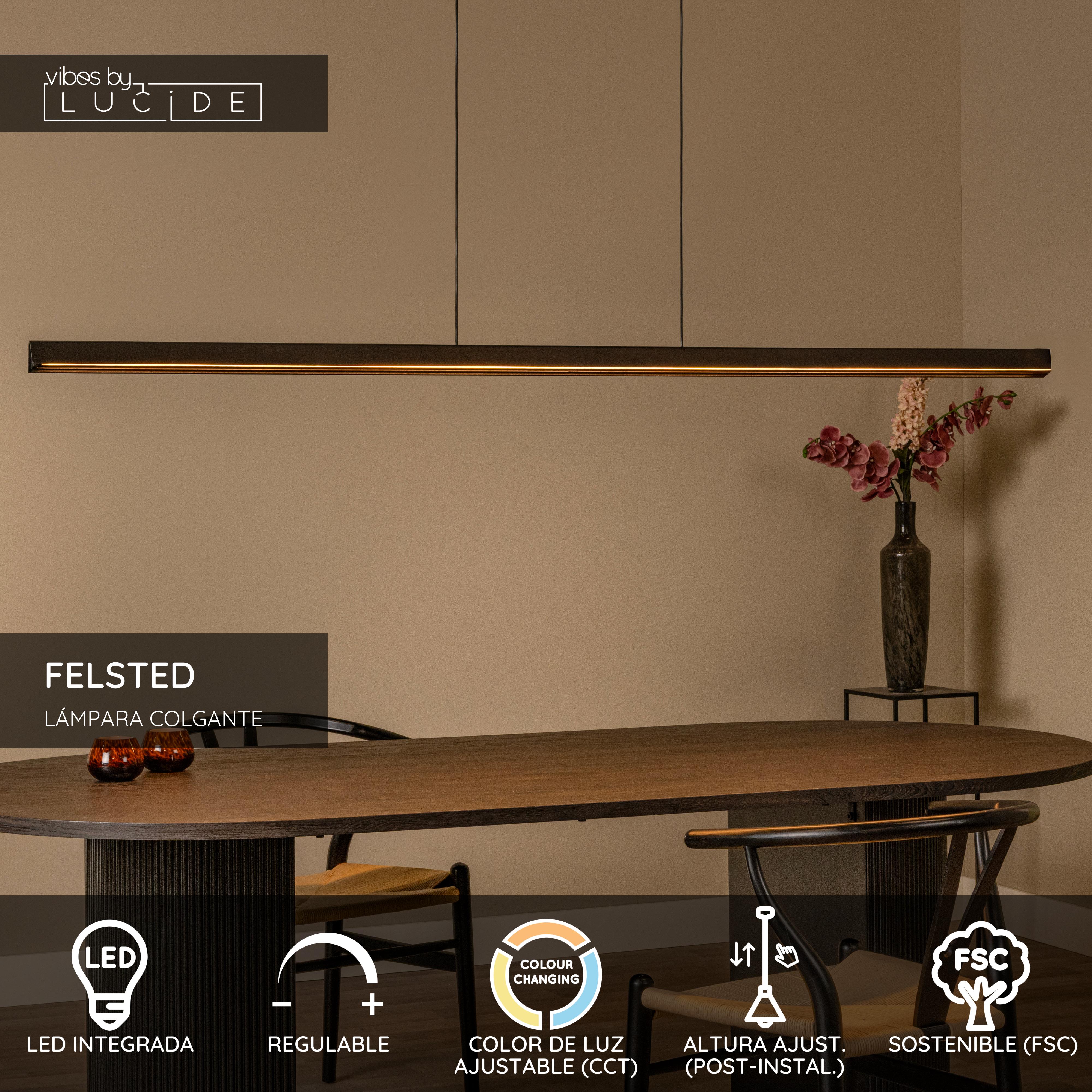Lucide FELSTED - Lámpara colgante - LED Regul. - CCT - 1x28W 2200K/4000K - Negro | Vibes