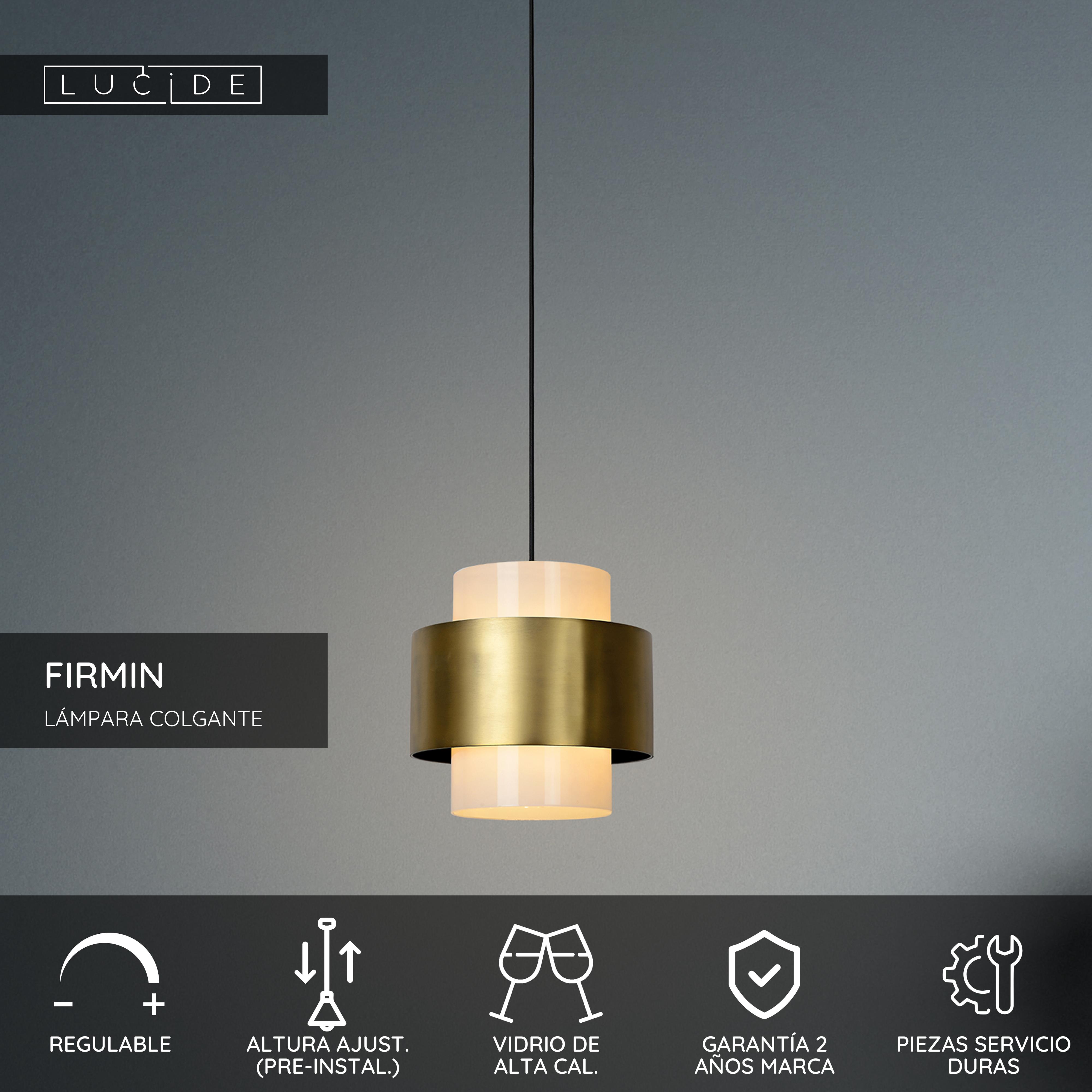 Lucide FIRMIN - Lámpara colgante - Ø 30 cm - 1xE27 - Oro mate / Latón