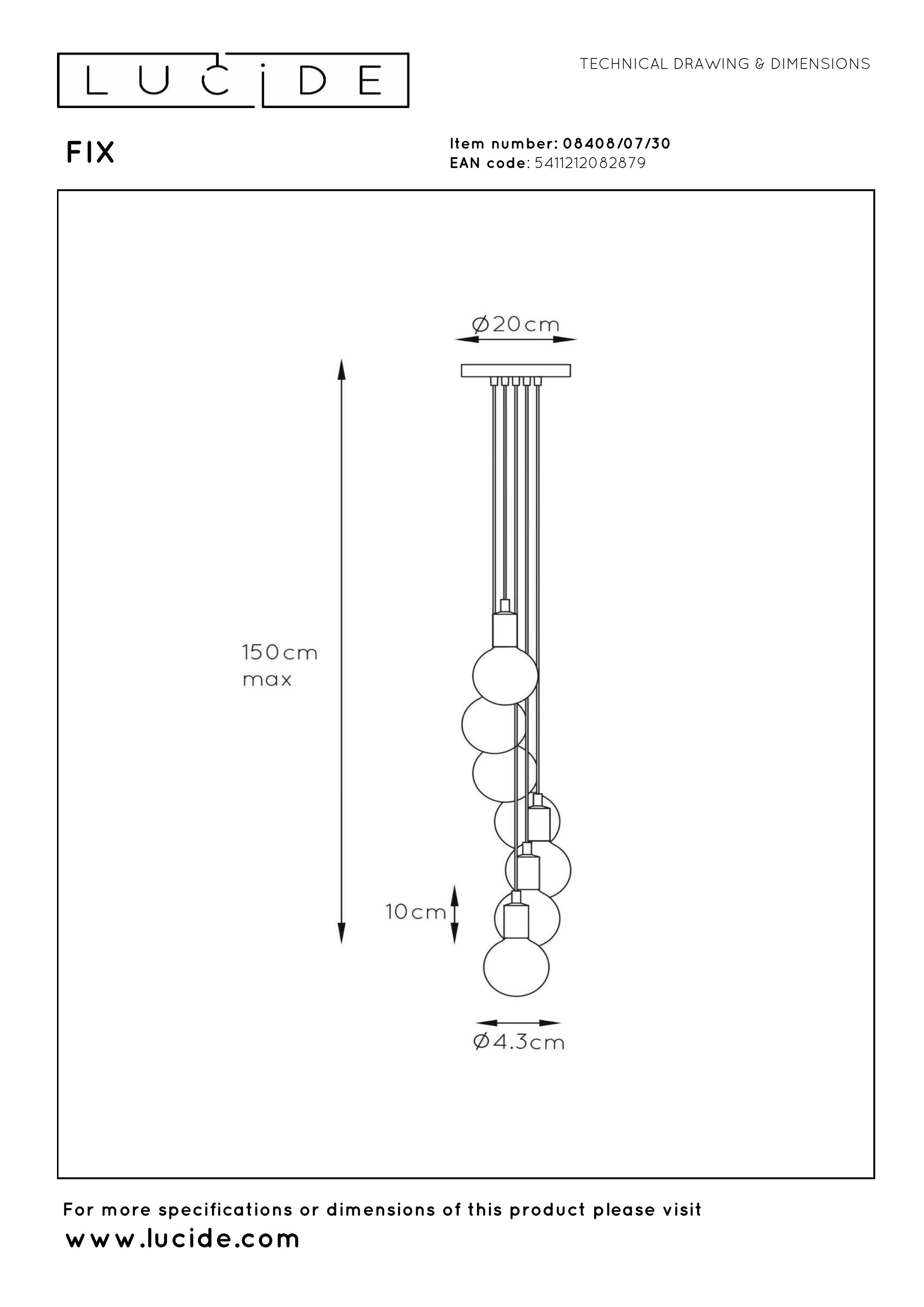 Una lámpara colgante no siempre tiene que estar bien orquestada. Fix Multiple reúne siete puntos de luz en un conjunto completamente relajado. Las bombillas cuelgan a varias alturas de una diminuta placa de fijación. Es una luminaria honesta y pura, sin fantasías. El cable de plástico de cada lámpara cuelga mediante una sencilla fijación de metal. El punto de luz más bajo cuelga a una distancia de 130 centímetros del techo. Fix Multiple es una luminaria muy adecuada para colgarla sobre una mesa de comedor o de salón. Un consejo: combínala con bombillas de filamento led para darle más dinamismo.