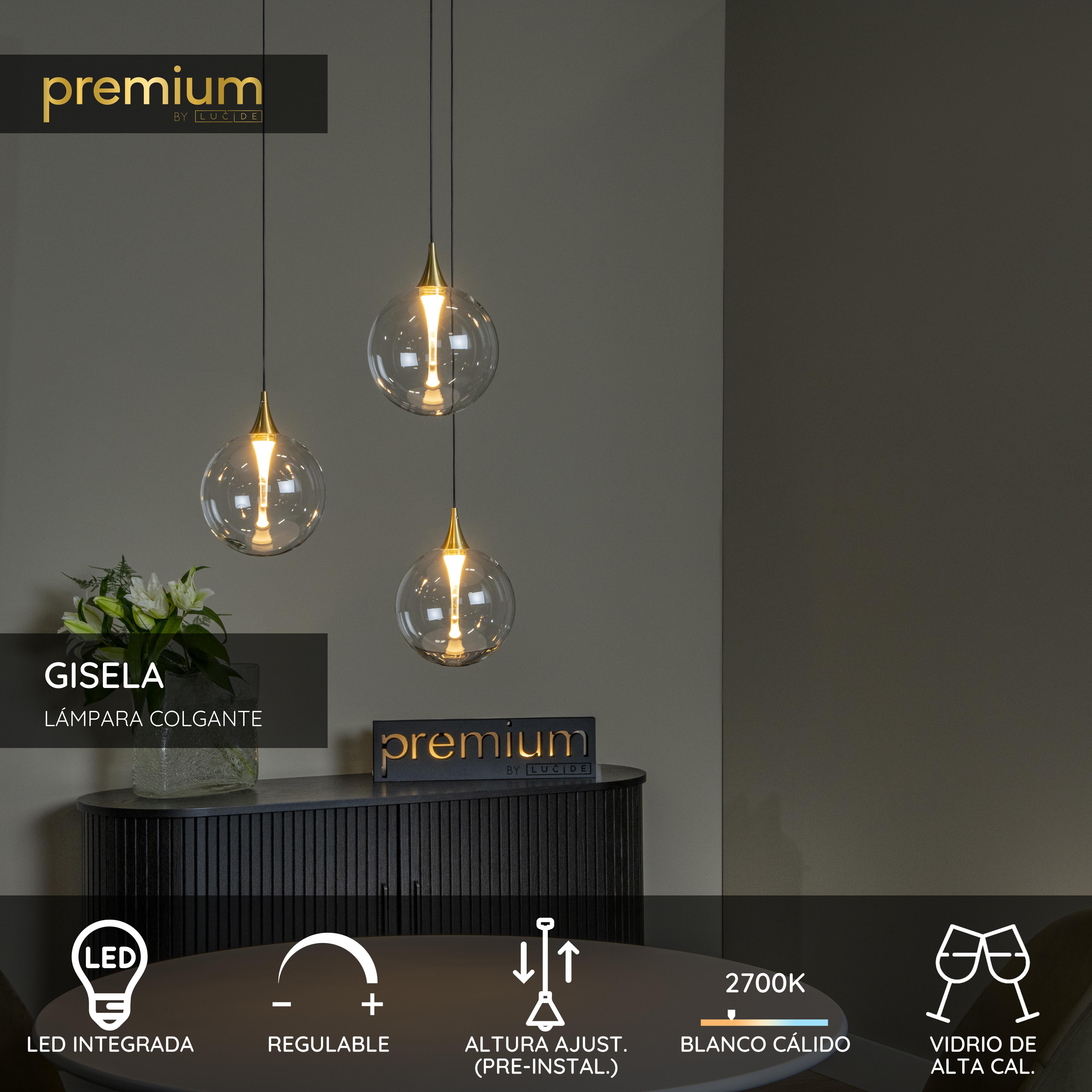 Lucide GISELA - Lámpara colgante - Ø 36 cm - LED Regul. - 3x4,3W 2700K - Transparente | Premium