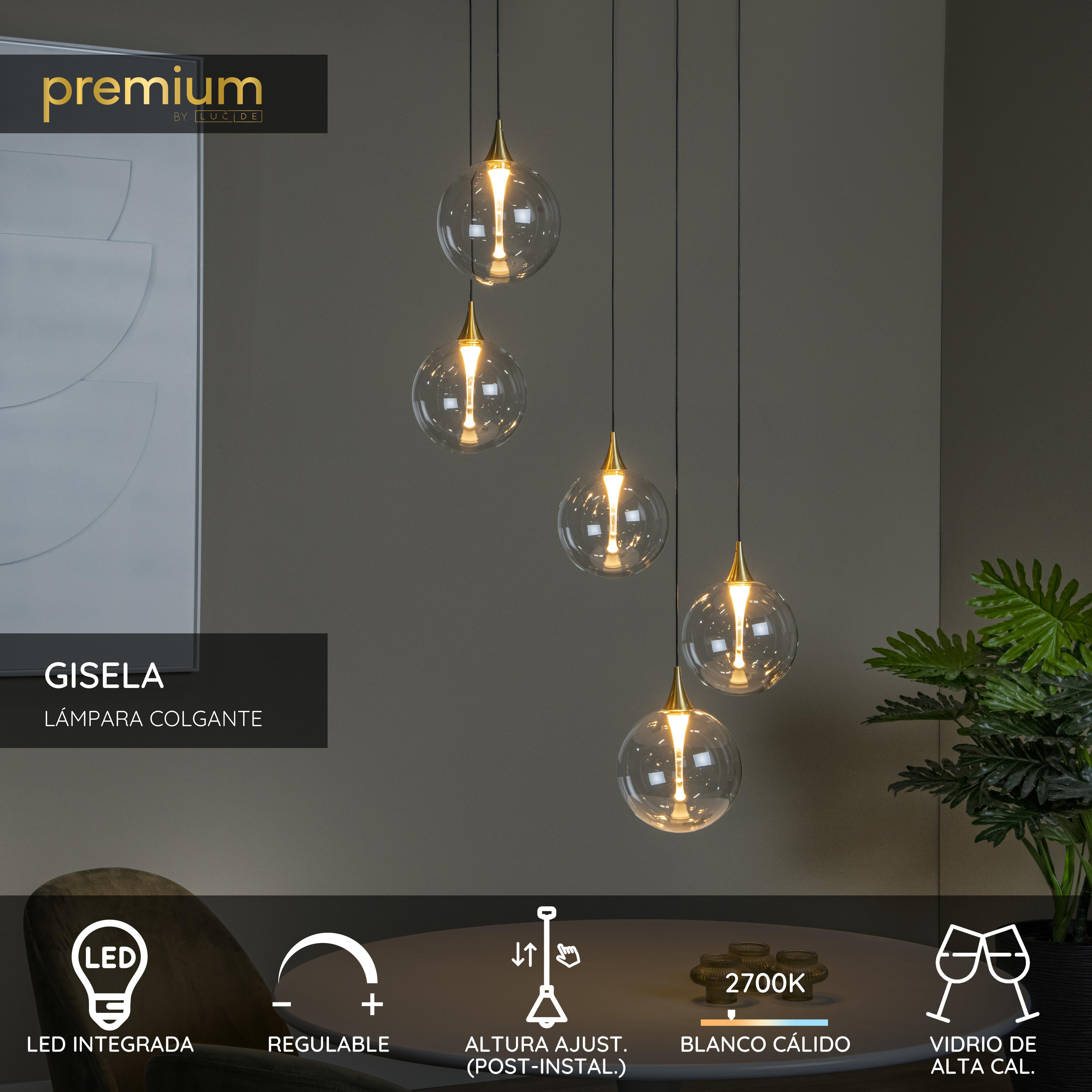 Lucide GISELA - Lámpara colgante - Ø 48 cm - LED Regul. - 5x3,8W 2700K - Transparente | Premium