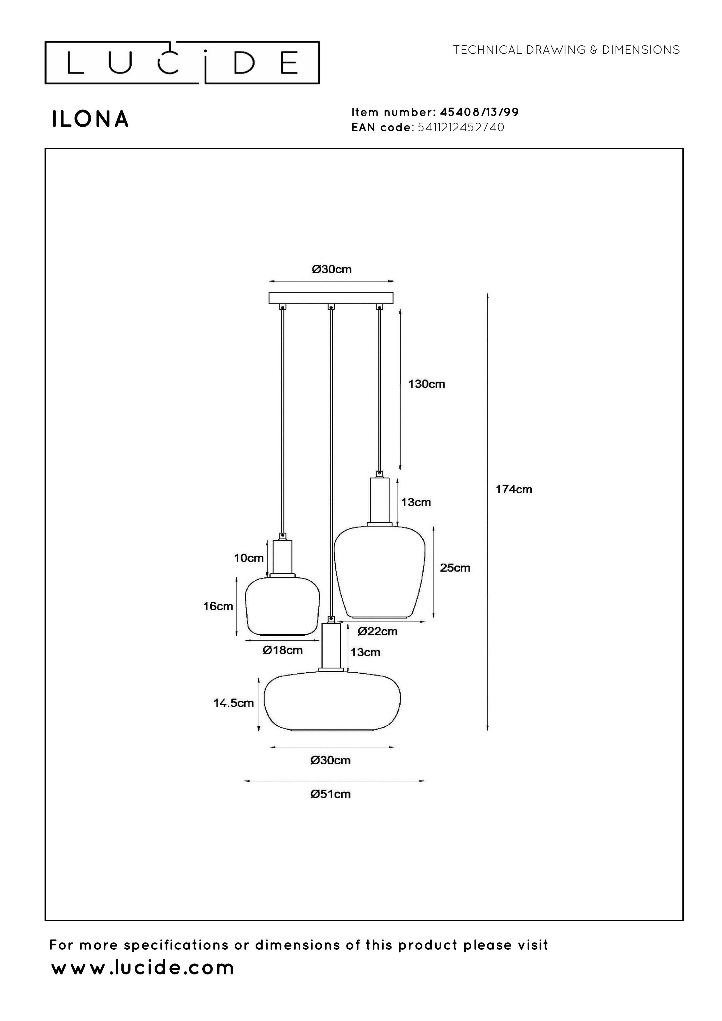 Incorpora color a tu decoración con el modelo Ilona. La desenfadada lámpara colgante con 3 pantallas de lámpara coloridas de vidrio de alta calidad seguramente alegrará todo tu espacio. ¿Sobre la mesa del comedor o sobre tu cama? No importa qué lugar elijas para ella, la lámpara Ilona siempre brilla. Opta por un toque más juguetón variando las diferentes pantallas de lámpara en altura, desde 70 hasta 174 cm. Además, Ilona es fácil de conectar a un regulador, lo que te permite crear la atmósfera perfecta en poco tiempo. Encantadora y sensual, la lámpara Ilona llenará tu vida de color.