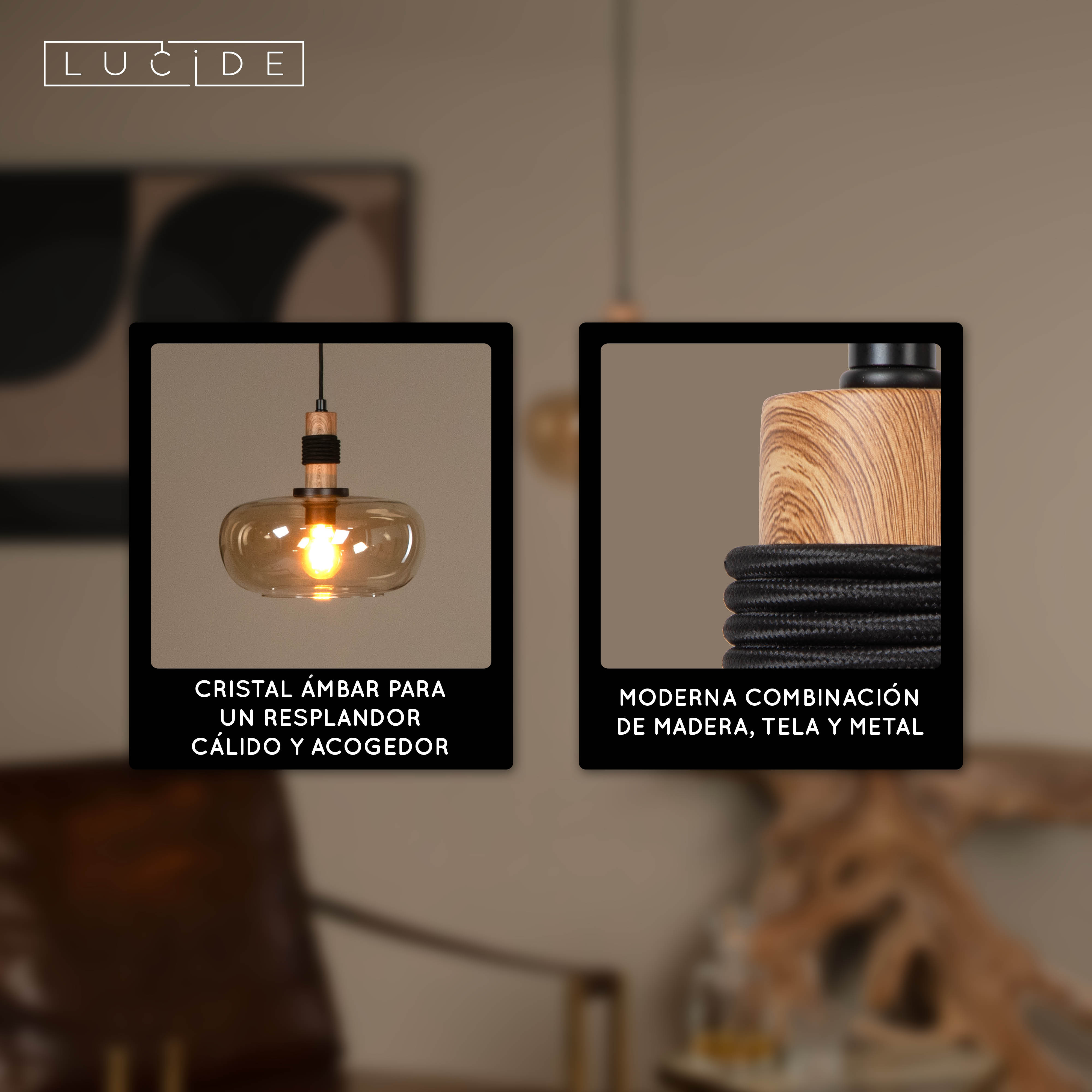 Lucide ILONA - Lámpara colgante - Ø 30 cm - 1xE27 - Ámbar