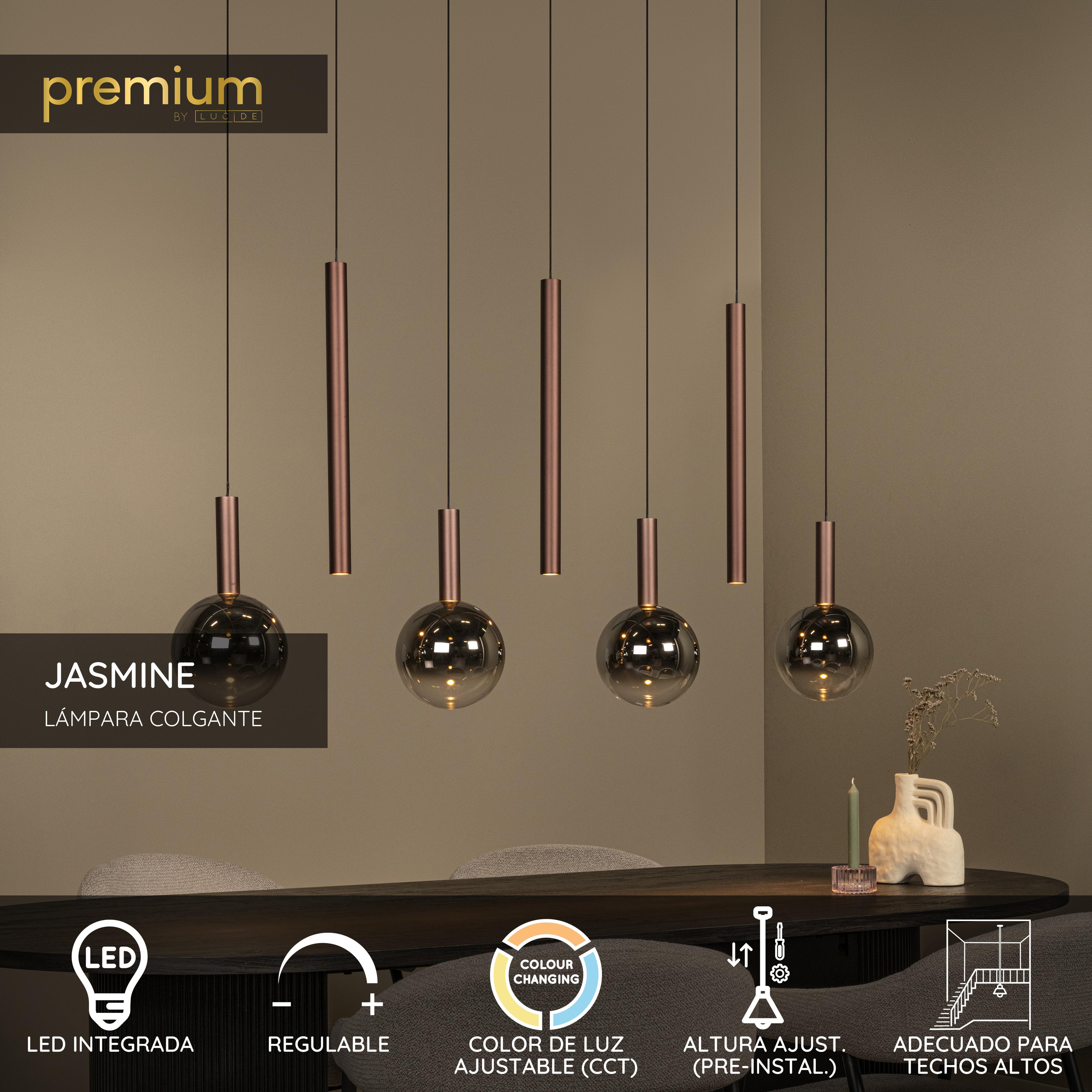 Lucide JASMINE - Lámpara colgante - LED Regul. - CCT - 7x4W 2200K/3300K - Adecuado para dobles alturas y techos altos - Cobre | Premium