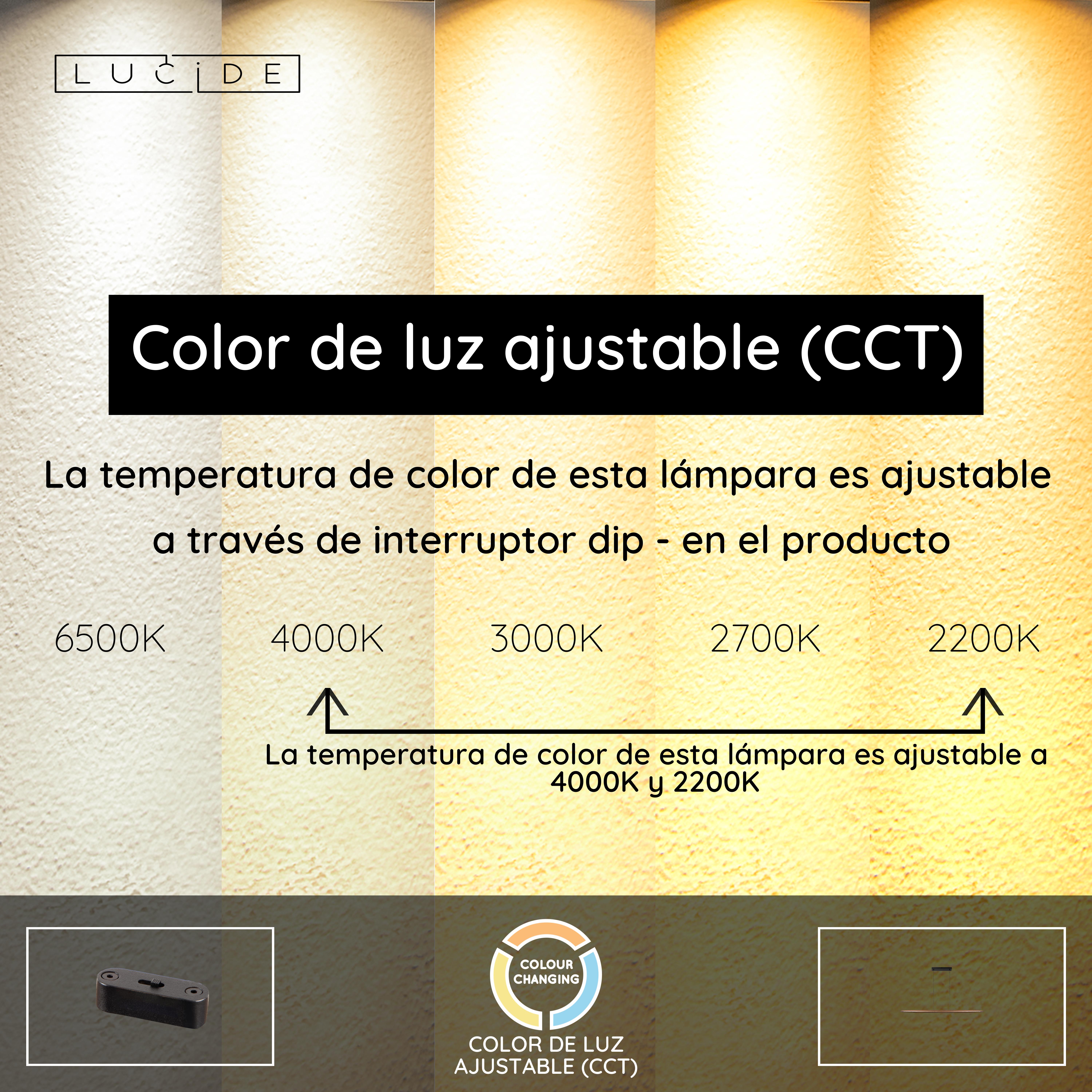 - Temperatura de color ajustable mediante interruptor dip en el producto (2200K-4000K)