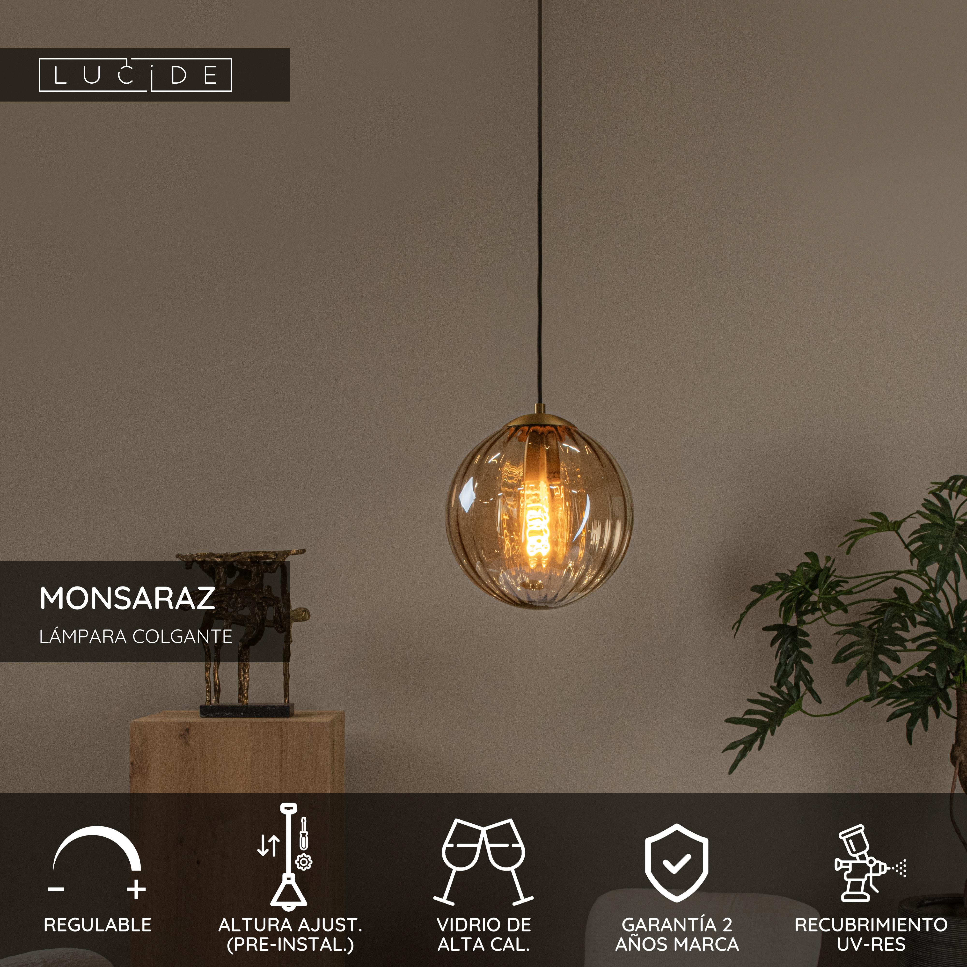 Lucide MONSARAZ - Lámpara colgante - Ø 25 cm - 1xE27 - Ámbar