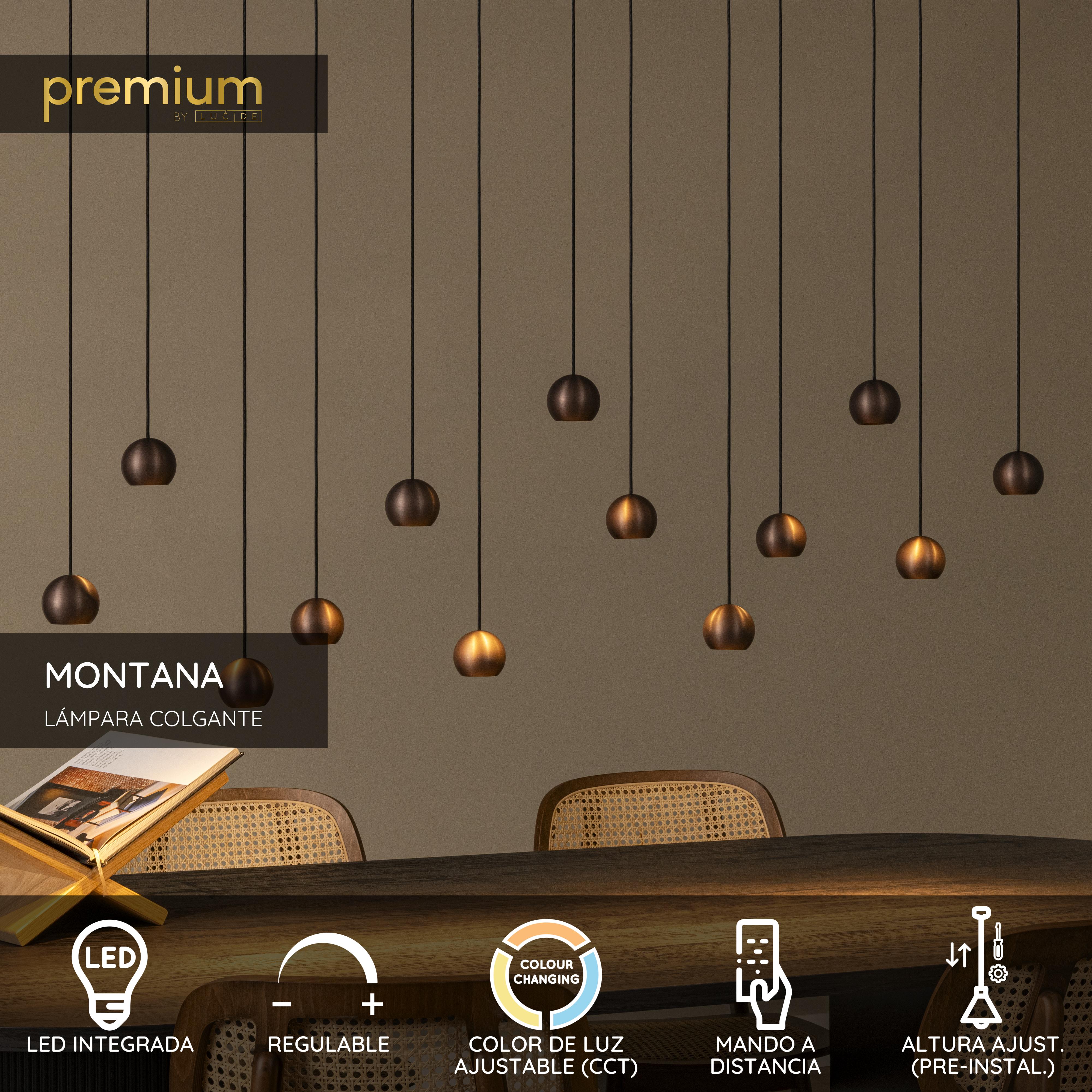 Lucide MONTANA - Lámpara colgante - LED Regul. - CCT - 13x5,7W 2700K/4000K - Adecuado para dobles alturas y techos altos - Café | Premium