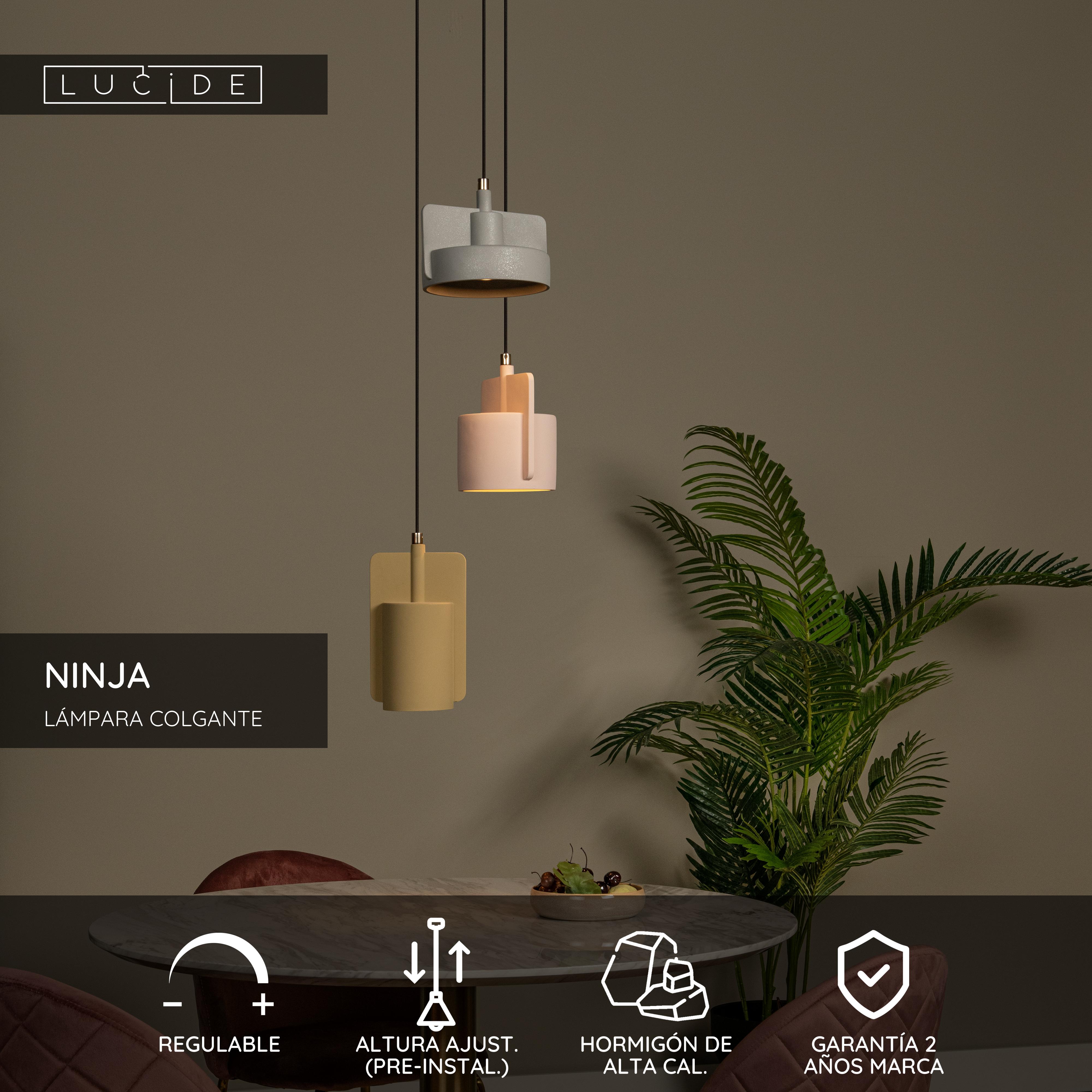 En un interior industrial o retro, esta alegre lámpara colgante realmente destaca. Le presentamos Ninja, con tres colgantes, cada uno con su propio diseño único. La característica más destacada de esta lámpara es su acabado en hormigón de alta calidad. Puede ajustar fácilmente la altura de cada lámpara colgante durante la instalación y conectarlos a un regulador para crear la iluminación ambiental perfecta para cualquier momento u ocasión. ¿Ninja al rescate? Por supuesto.