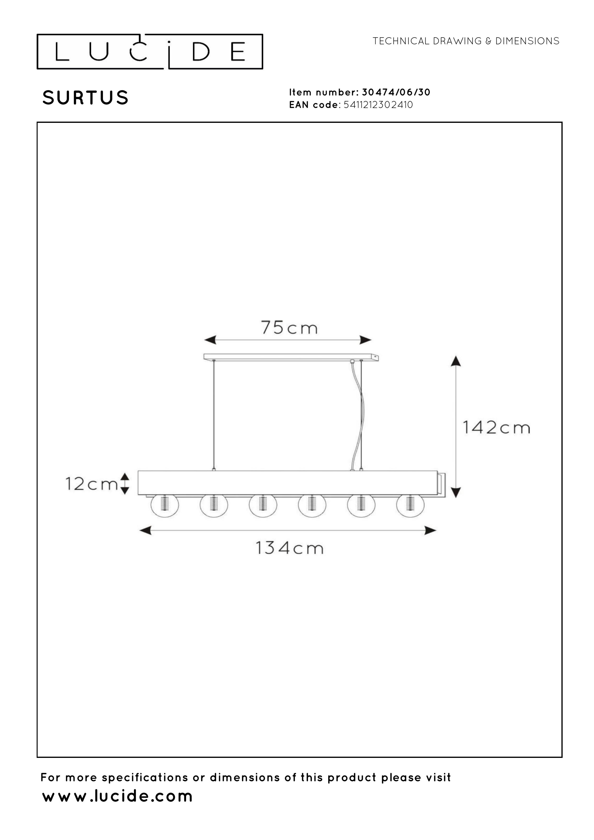Lucide SURTUS - Lámpara colgante - 6xE27 - Negro